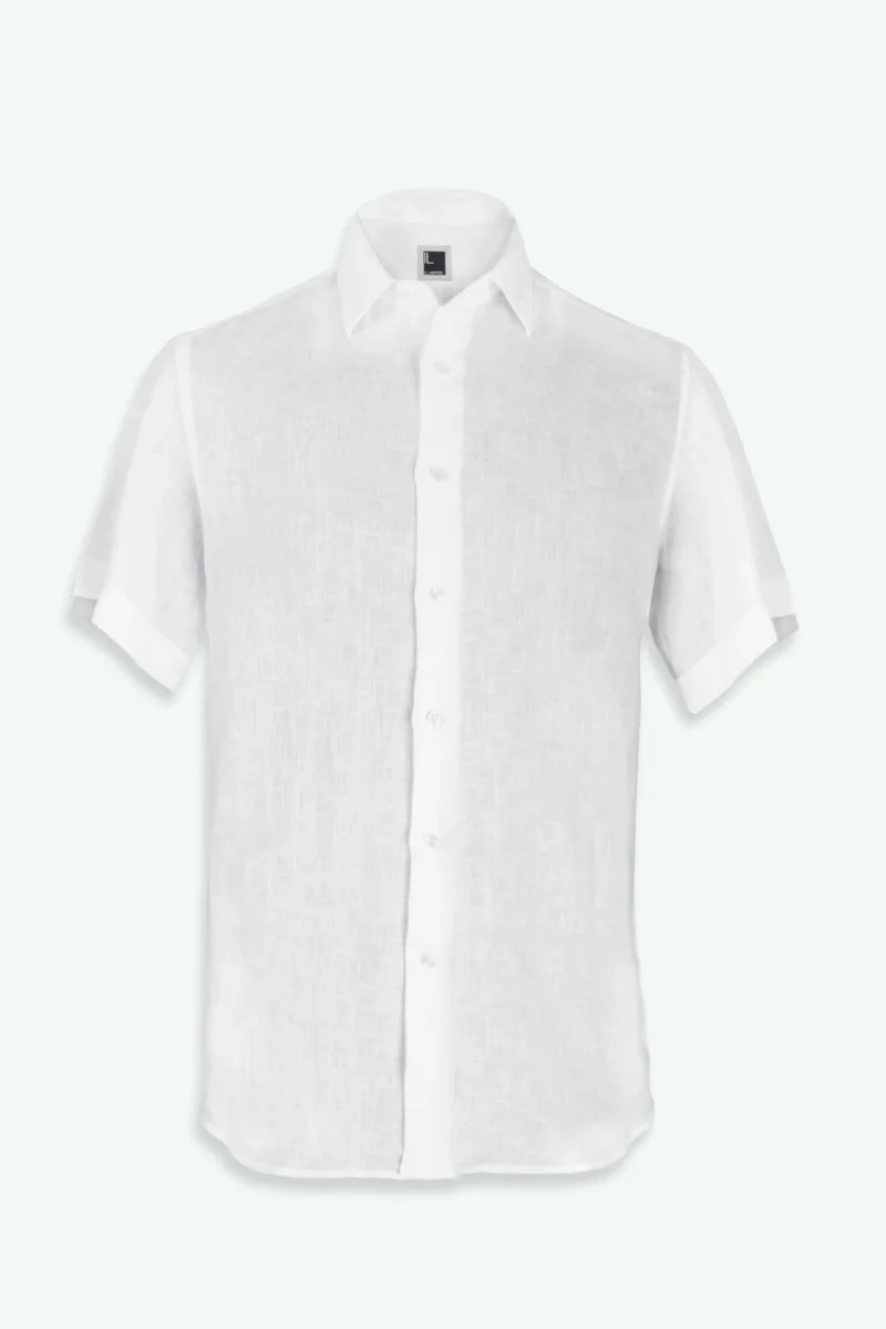 Camicia di Lino con Maniche Corte Regular Fit – BIANCO