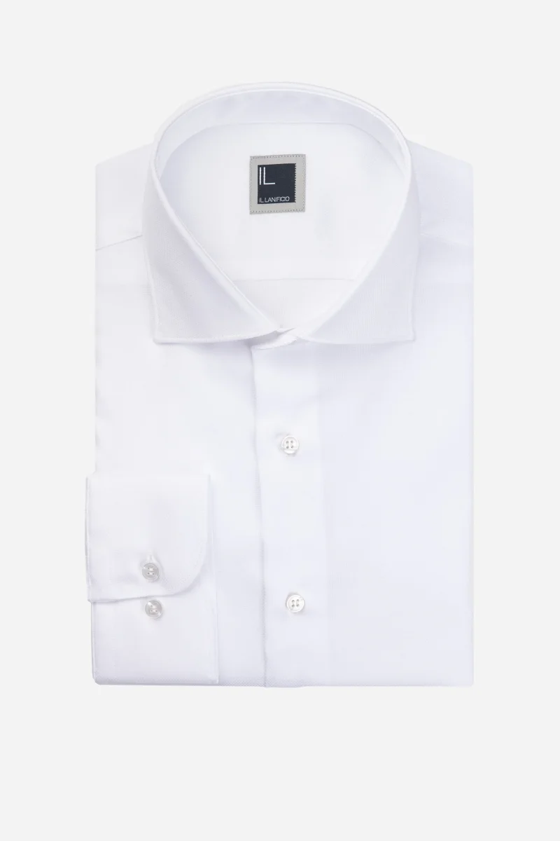 Un must del guardaroba maschile, questa camicia da uomo bianca in tessuto dobby รจ perfetta per chi cerca uno stile versatile e contemporaneo. Realizzata in puro cotone compatto, รจ valorizzata da una texture tridimensionale che dona carattere anche agli outfit piรน essenziali. Il collo francese, la vestibilitร regolare e la struttura leggera ma resistente rendono questa camicia ideale da indossare con un completo casual, con pantaloni chino o sotto un blazer destrutturato per uno stile business rilassato. Dettagli sartoriali come le stecche estraibili, le maniche con attaccatura allโinglese, i bottoni cuciti con punto annodato e le cuciture con 7 punti al cm assicurano resistenza, comfort e una qualitร superiore, elementi distintivi delle camicie uomo Il Lanificio. Questa camicia elegante da uomo รจ pensata per accompagnarti con stile in ogni momento della giornata, dal lavoro al tempo libero, con la sicurezza di un capo raffinato e facile da abbinare.