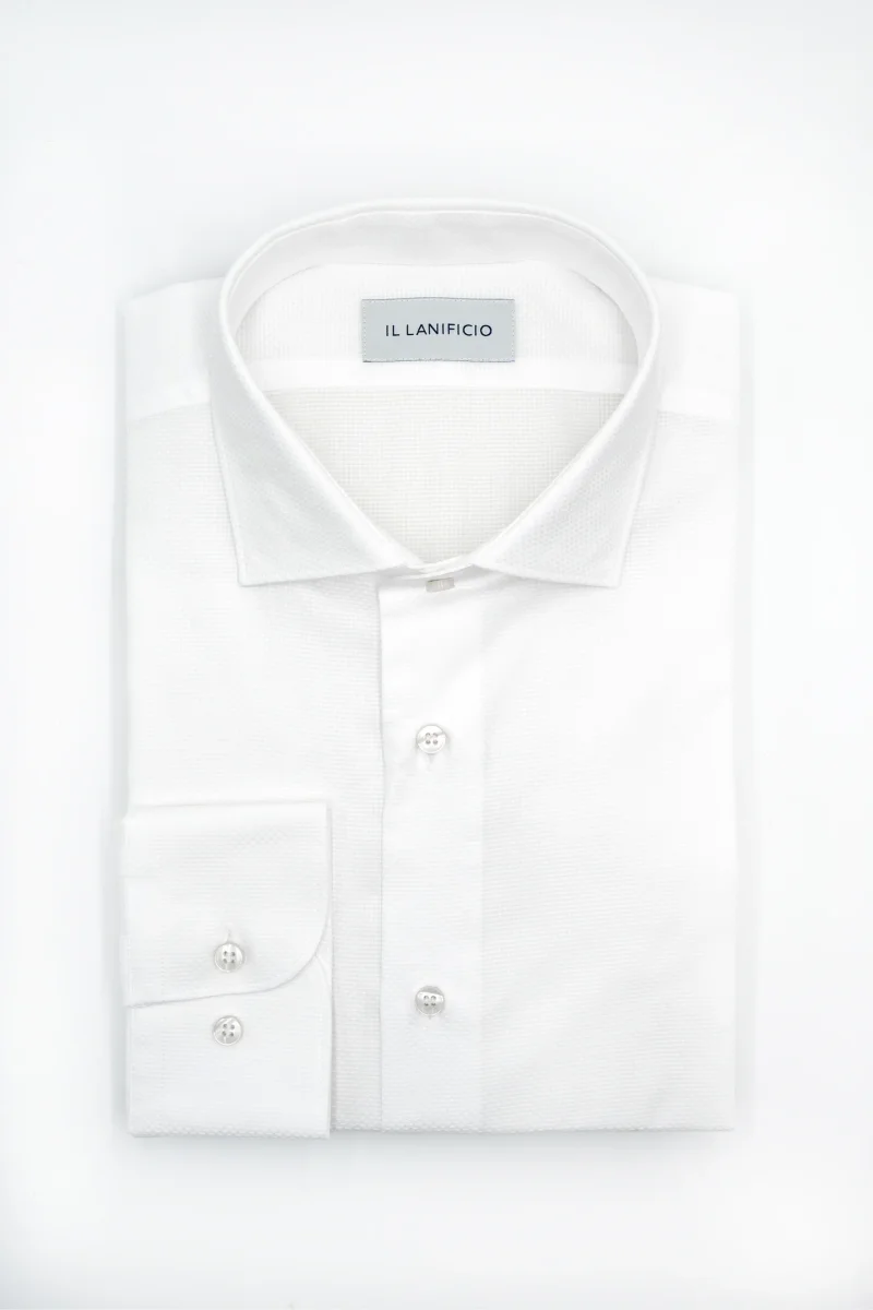 Camicia Dobby Custom Fit in Cotone – BIANCO OPERATO