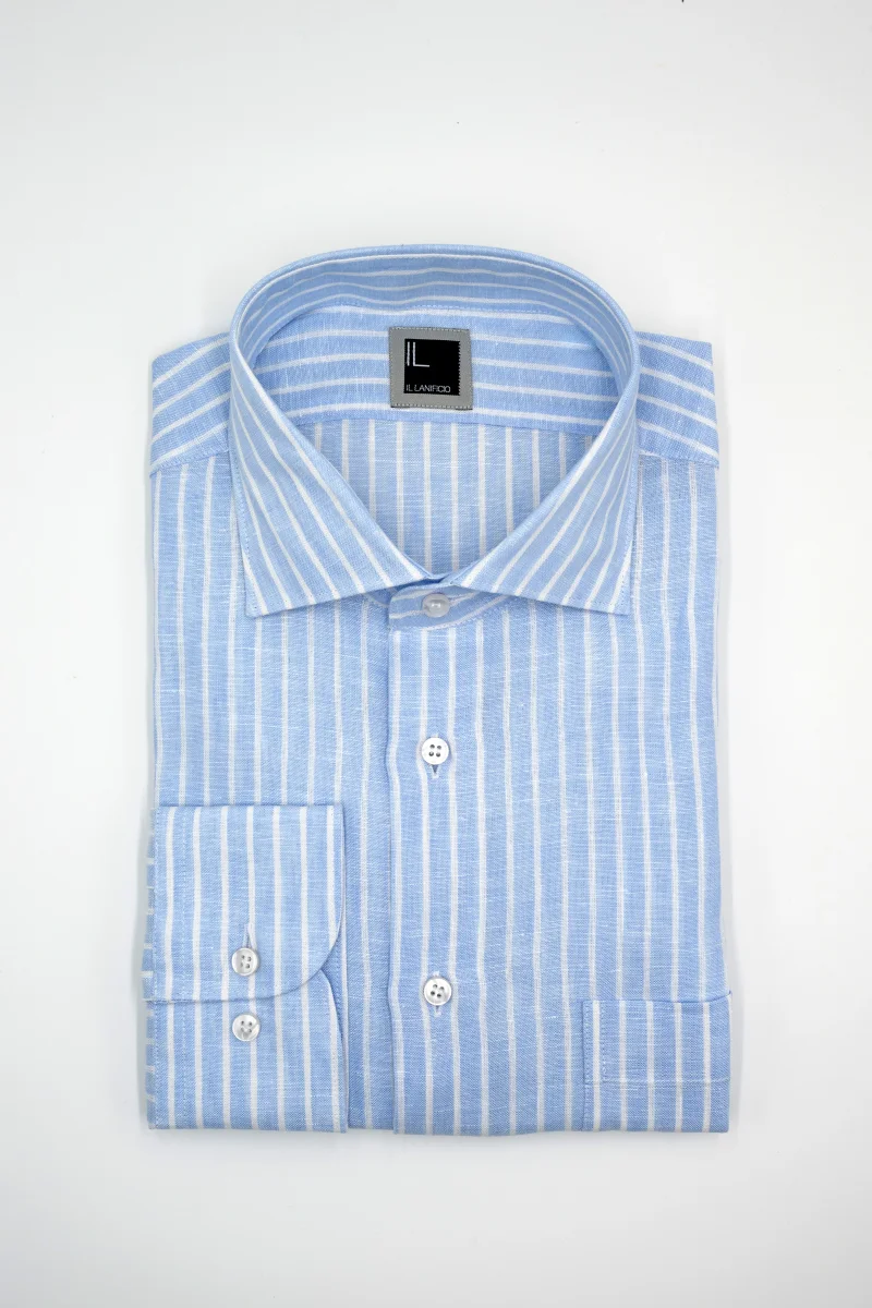 Camicia Fantasia con Taschino Custom Fit in Lino – AZZURRO RIGATO