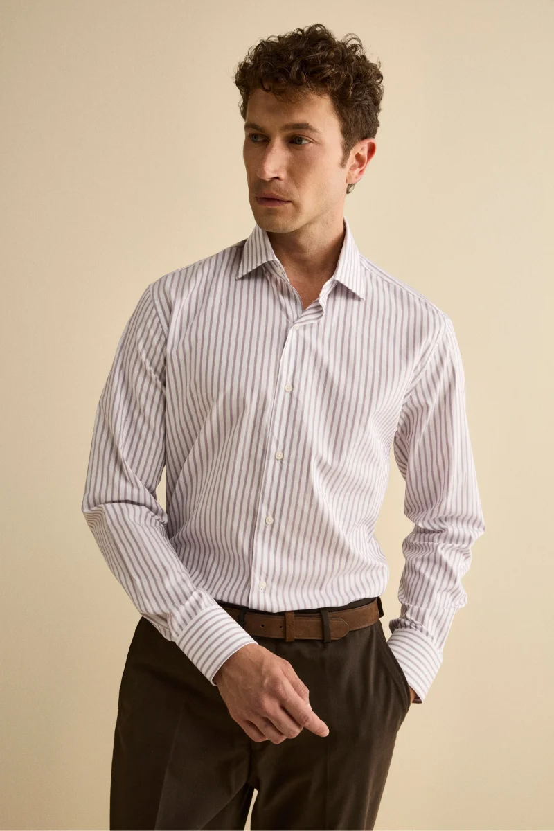 Camicia Fantasia Custom Fit con Collo Francese in Cotone – RIGATO BIANCO/LILLA