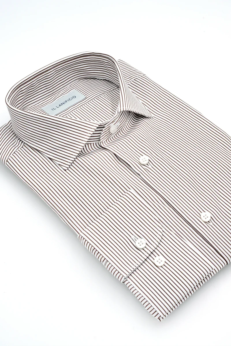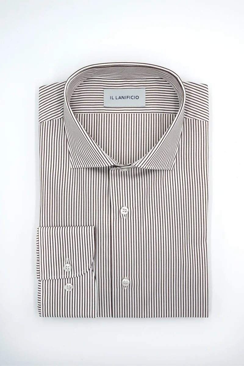 Camicia Fantasia Custom Fit in Cotone Dobby – MARRONE RIGATO