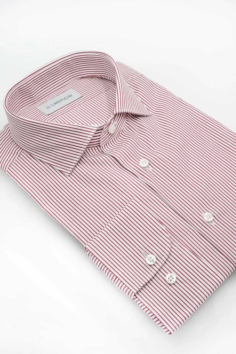 Camicia Fantasia Custom Fit in Cotone Dobby – ROSSO RIGATO
