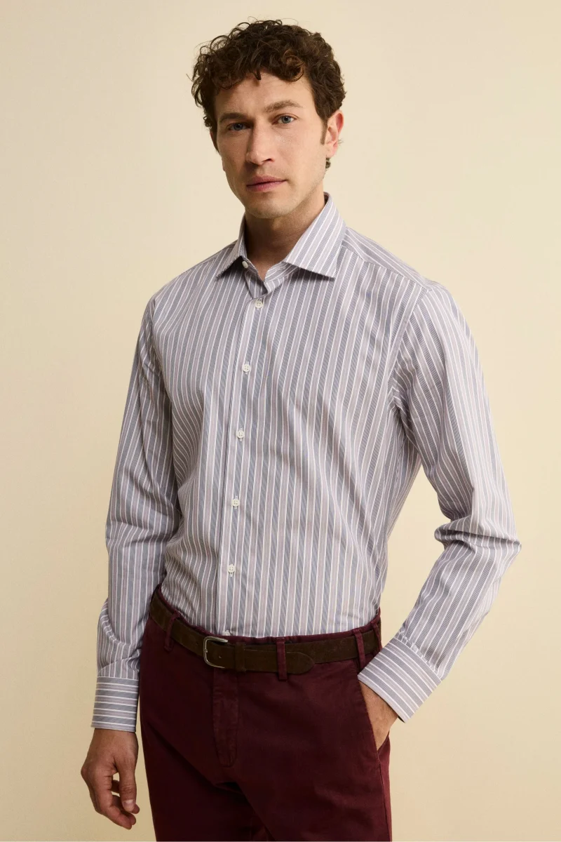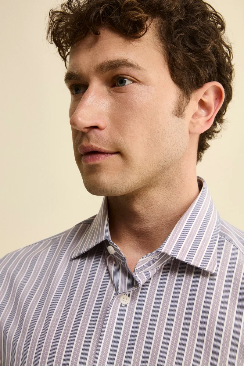 Camicia Fantasia Custom Fit in Cotone – RIGATO VIOLA/BLU