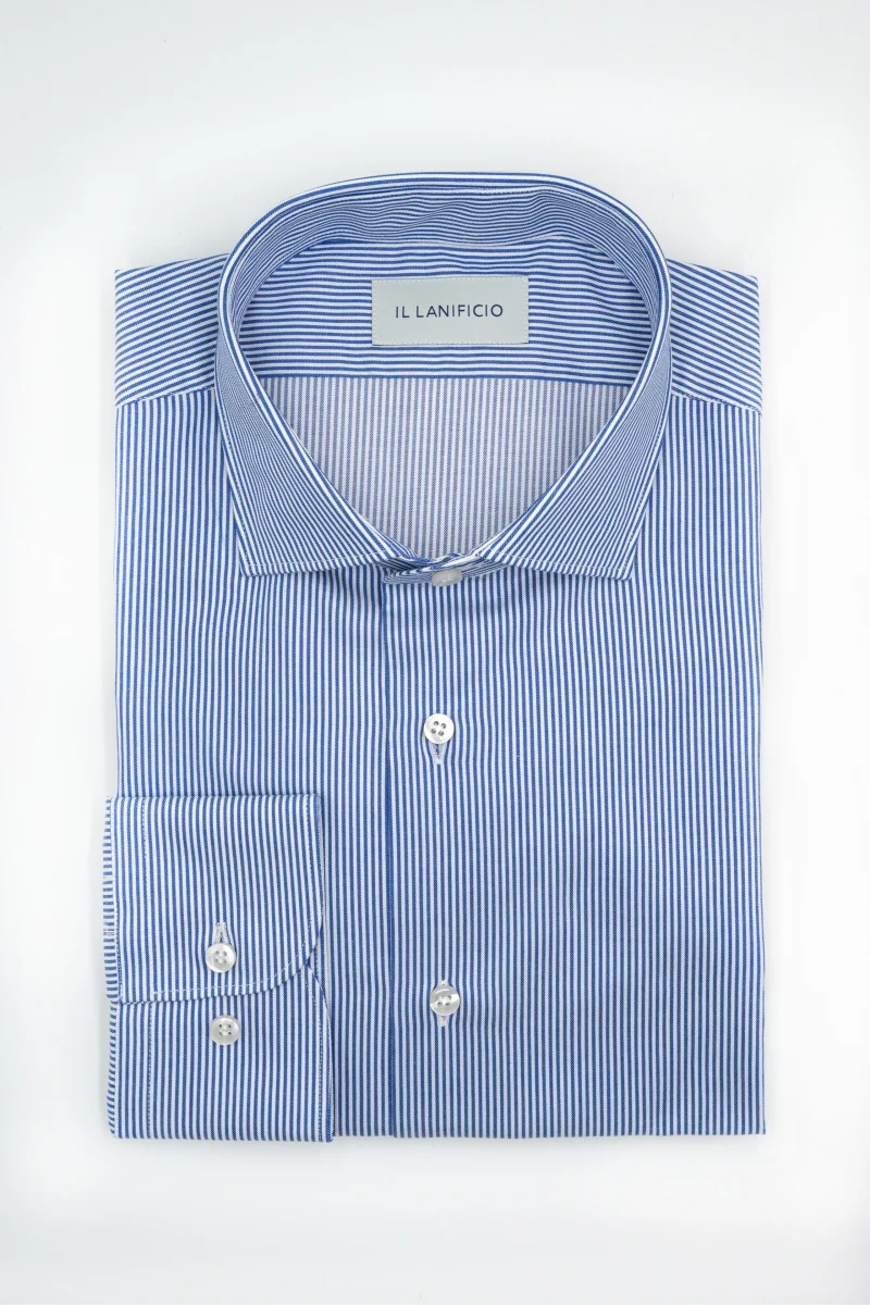 Camicia Fantasia Custom Fit in Twill di Cotone – RIGATO BLU CHIARO