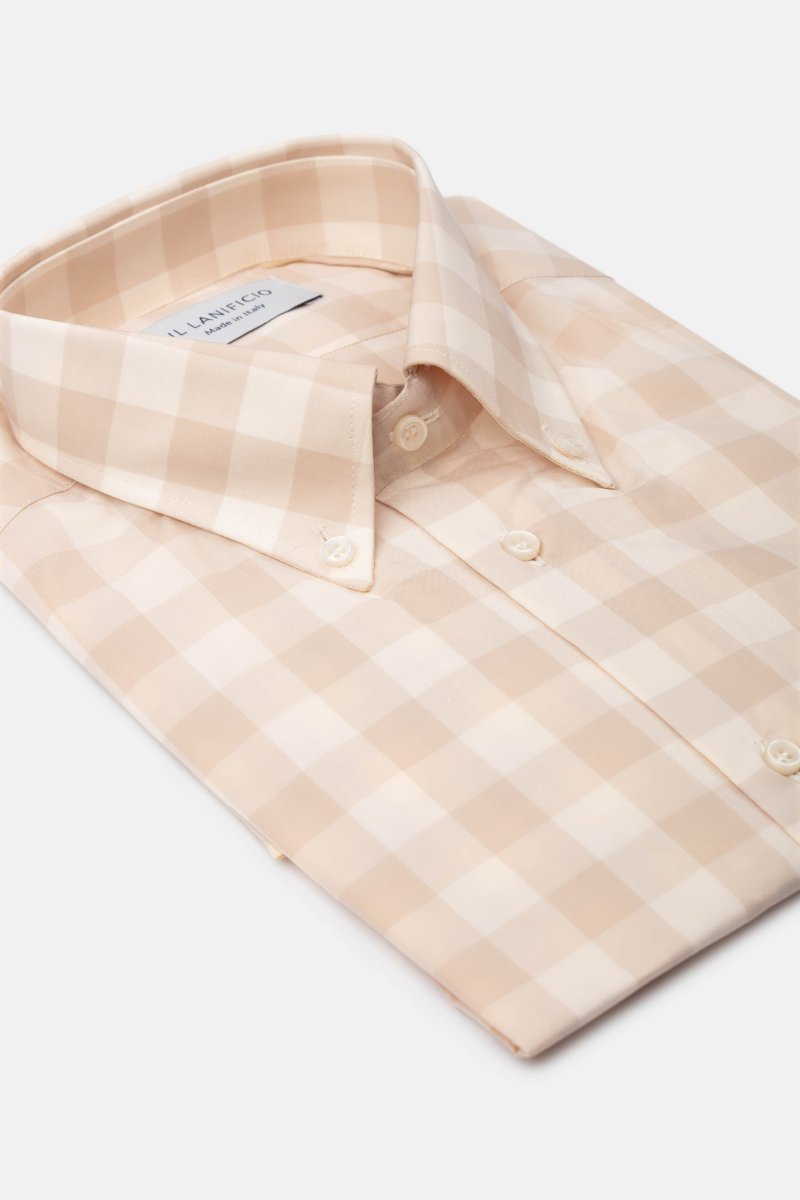 Camicia Fantasia Slim Button Down- BEIGE QUADRI