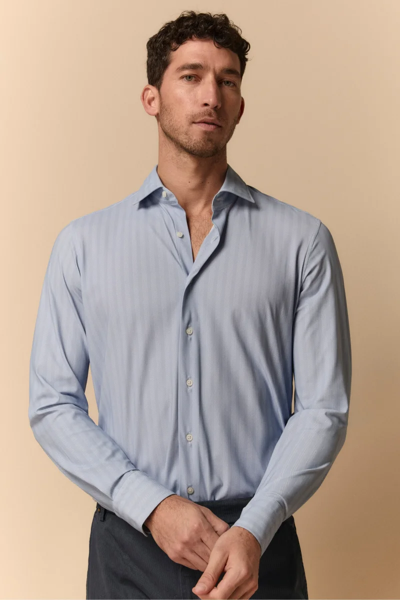 Camicia Fantasia Slim Fit in Jersey – AZZURRO SPIGATO