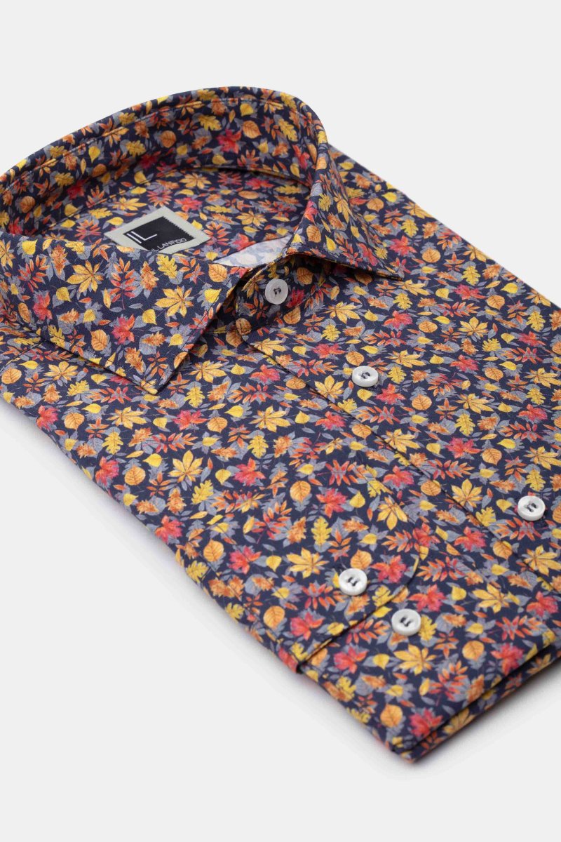 Camicia Fantasia Slim Fit in Popeline – FANT. BLU/GIALLO