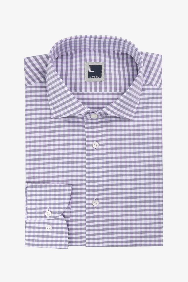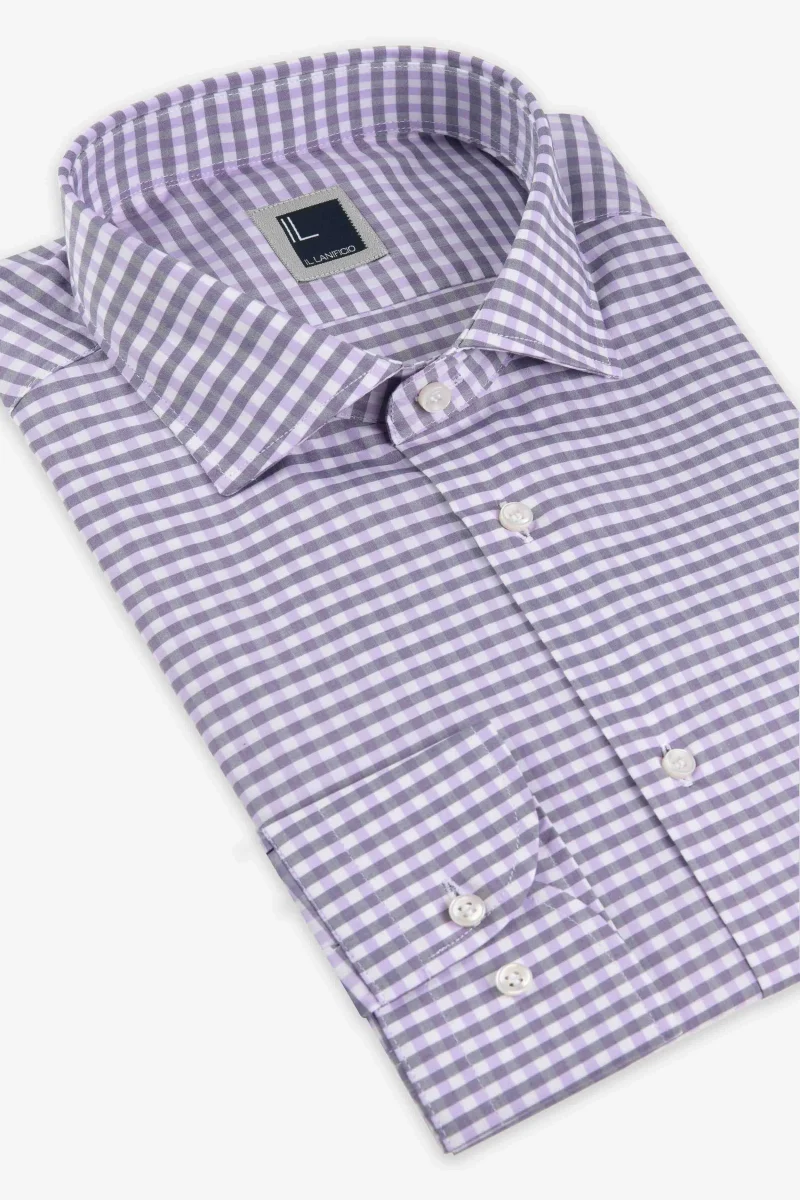 Realizzata con il cotone di alta qualitร del cotonificio Albini, questa camicia offre comfort e stile ineguagliabili. La microfantasia a quadretti color glicine aggiunge un tocco di personalitร al tuo guardaroba, mentre il tessuto leggero e traspirante ti mantiene fresco e comodo tutto il giorno. Sia che tu stia affrontando una giornata in ufficio o godendoti un weekend rilassante, questa camicia รจ la scelta perfetta per un look sofisticato e senza tempo. Made in Italy. Vestibilitร slim.