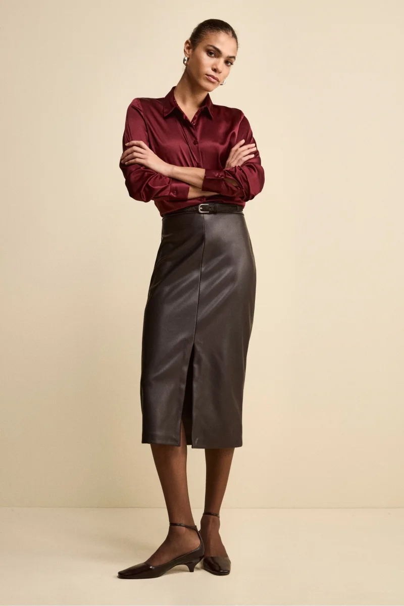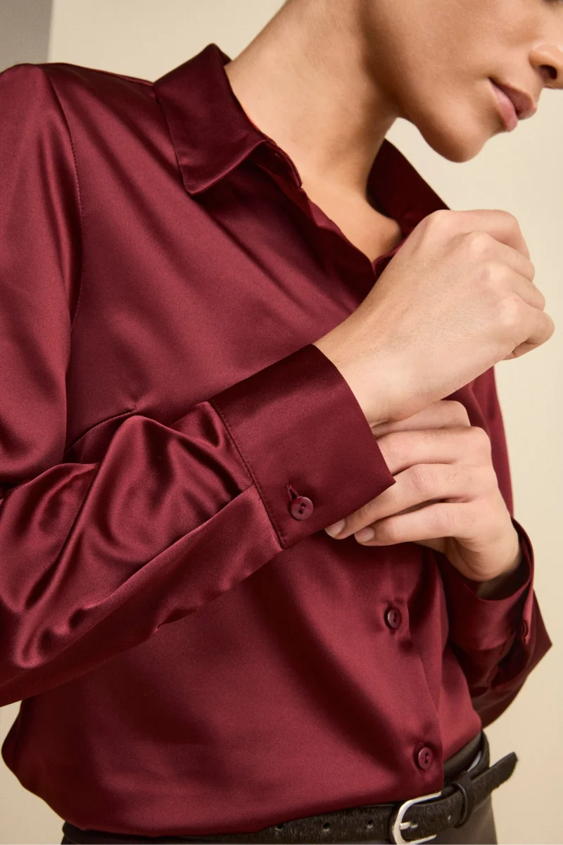 Camicia Morbida in Raso con Bottoni – BORDEAUX