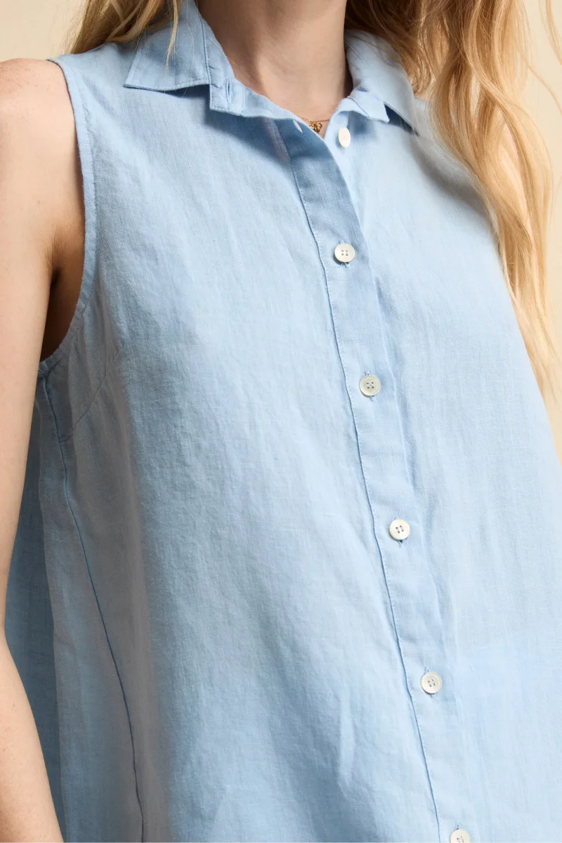 Camicia Morbida Smanicata in Lino – AZZURRO