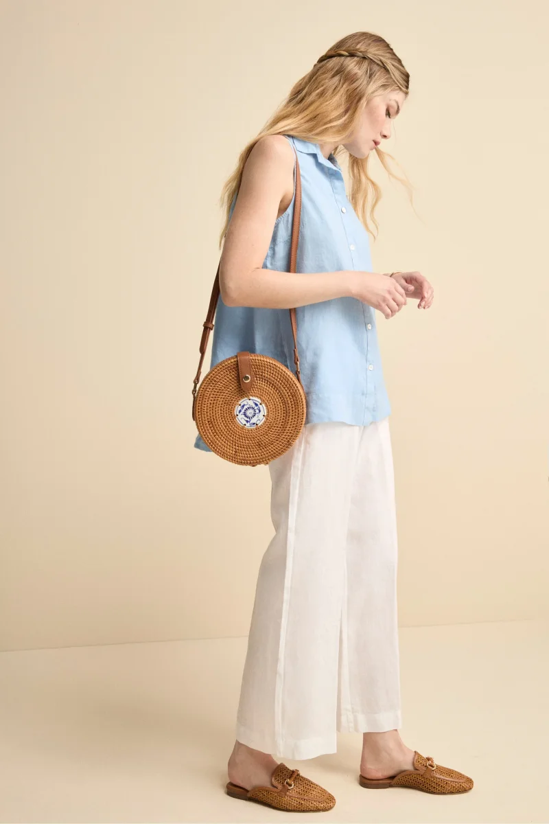 Leggera e dallo stile rilassato, questa camicia smanicata da donna รจ realizzata in 100% lino tinto capo, perfetta per affrontare con eleganza le giornate piรน calde. Il design pulito con colletto classico, chiusura frontale con bottoni e spacchi laterali la rende un capo versatile e raffinato. La vestibilitร morbida e il taglio piรน lungo sul retro donano movimento e comfort, valorizzando la figura con naturalezza. Unโottima scelta per chi cerca camicie estive in lino da donna da indossare con pantaloni in cotone o gonne fluide per look casual chic o per il tempo libero. Parte della collezione IL Lanificio, รจ un capo essenziale per il tuo guardaroba stagionale. Made in Italy. La modella รจ alta 170 cm e indossa la taglia 42.