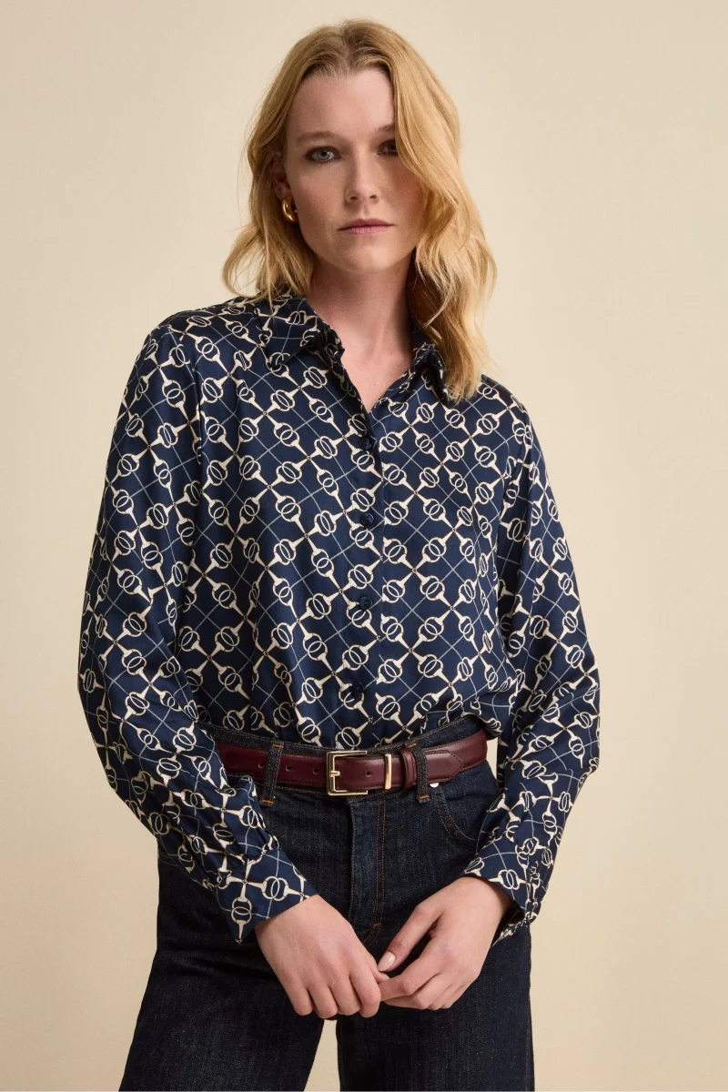 Camicia Morbida Stampata in Raso – FANT. BLU