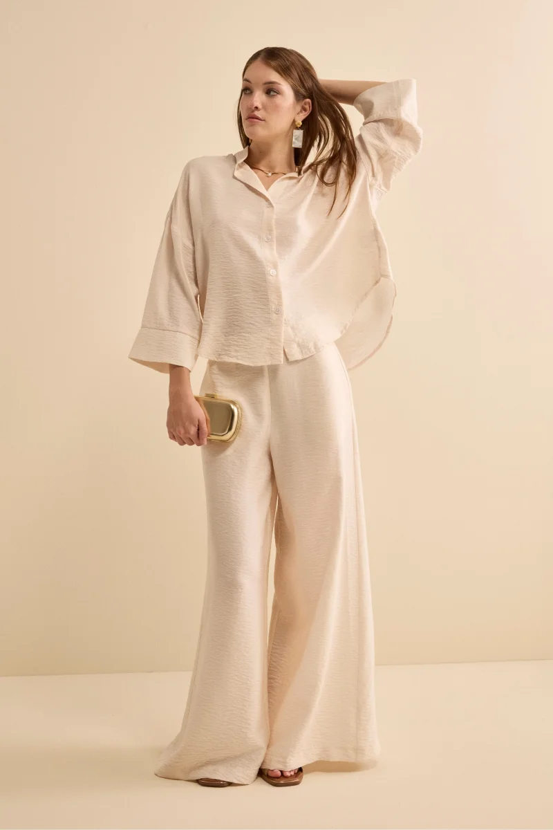 Ampia, fresca e ricercata, questa Camicia Over Coreana con Manica Kimono รจ un capo essenziale per la stagione estiva. Realizzata in 100% viscosa, morbida e fresca al tatto, presenta una vestibilitร over e un design contemporaneo che abbina linee fluide a dettagli distintivi. Il collo alla coreana aperto dona un tocco raffinato e rilassato, mentre […]