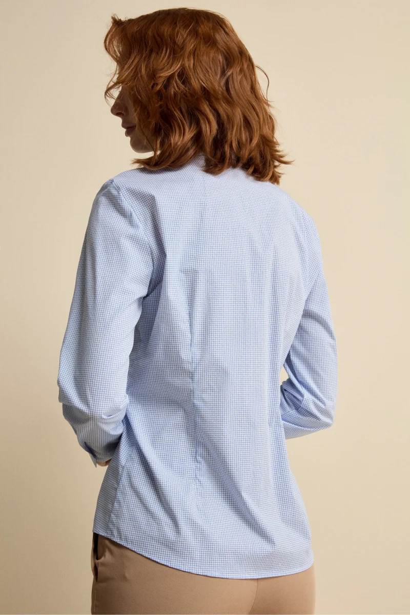 Realizzata in puro cotone in fantasia, questa camicia over da donna unisce comfort e personalitร . Il colletto classico e la chiusura frontale con bottoni completano un design essenziale, mentre la vestibilitร ampia dona libertร di movimento e unโallure disinvolta. Parte della collezione IL Lanificio, รจ perfetta da indossare con pantaloni sartoriali per un look da ufficio moderno o con denim a vita alta per uno stile piรน casual. La modella รจ alta 177 cm e indossa la taglia 42.
