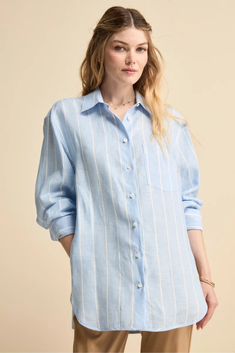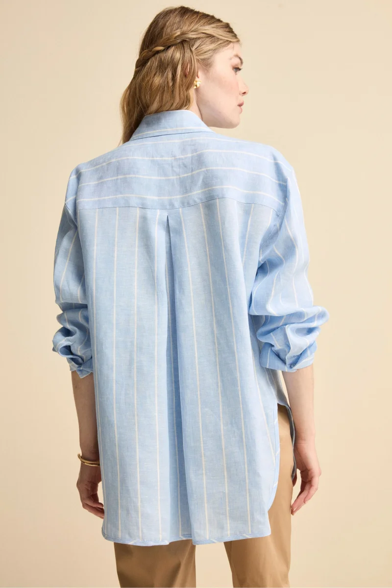 Camicia Over in Lino con Taschino – AZZURRO RIGATO