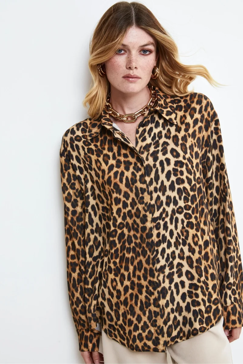Aggiungi un tocco di carattere al tuo look con questa camicia donna over maculata Made in Italy. Con una vestibilitร morbida, colletto classico. chiusura frontale a bottoni, รจ perfetta per un look casual-chic. Garantisce un fit confortevole, mentre il design leopardato e moderno la rende ideale per chi cerca uno stile distintivo e versatile. Un capo essenziale per un guardaroba di tendenza. La modella รจ alta 170 cm e indossa la taglia 42.