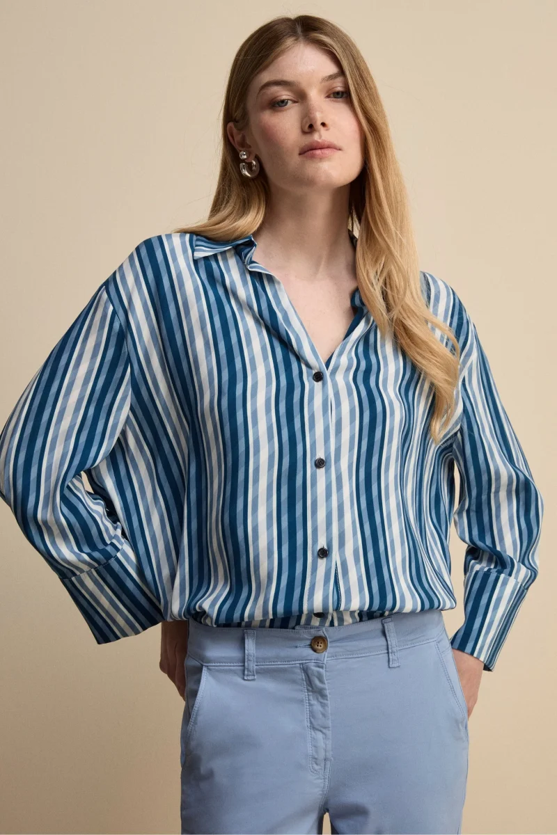 Camicia Over Scollo a V – BLU RIGATO