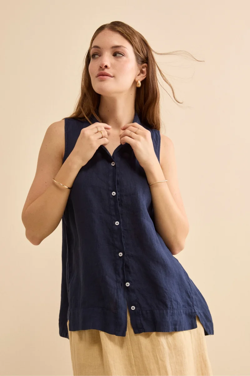 Camicia Over Smanicata in Lino – NAVY