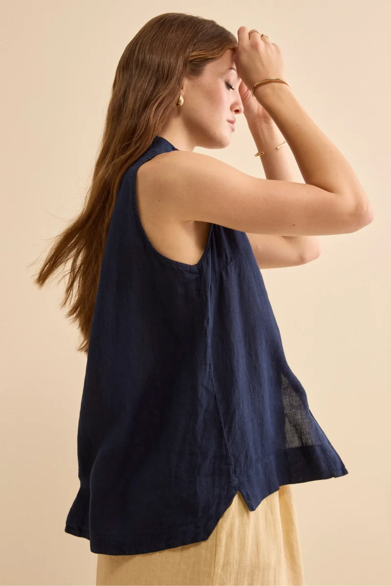 Leggera ed elegante, questa Camicia Over Smanicata in Lino รจ un capo essenziale per il guardaroba estivo femminile. Realizzata in 100% lino tinto capo con lavorazione finta inglese, unisce la naturalezza del lino a una texture raffinata e leggermente strutturata, ispirata alla tradizione sartoriale britannica. Il design over presenta linee morbide, colletto classico, chiusura frontale con bottoni e spacchetti laterali, mentre il taglio piรน lungo sul retro dona movimento e armonia alla silhouette. La vestibilitร fluida e senza maniche la rende perfetta per affrontare le giornate piรน calde con uno stile rilassato ma ricercato. Parte della collezione IL Lanificio, questa camicia in lino da donna รจ ideale da abbinare a un pantalone in lino con coulisse, una gonna midi fluida o un denim chiaro per un look estivo elegante, da cittร o da vacanza. La modella รจ alta 175 cm e indossa la taglia 42.