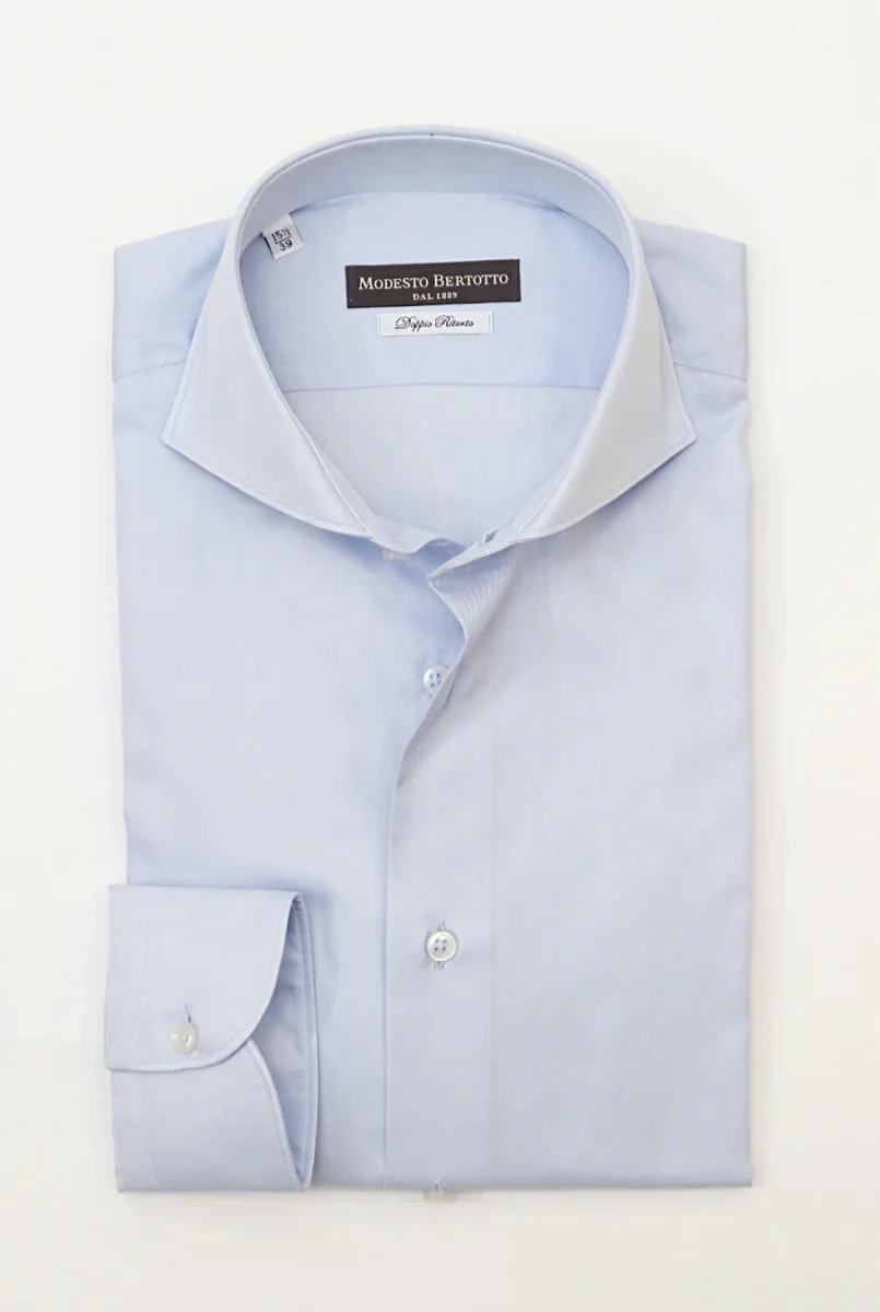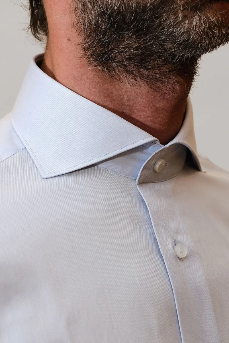 Il tessuto in cotone doppio ritorto รจ inoltre visibilmente piรน brillante: la vostra camicia sarร meno soggetta a pieghe e piรน facile da stirare.