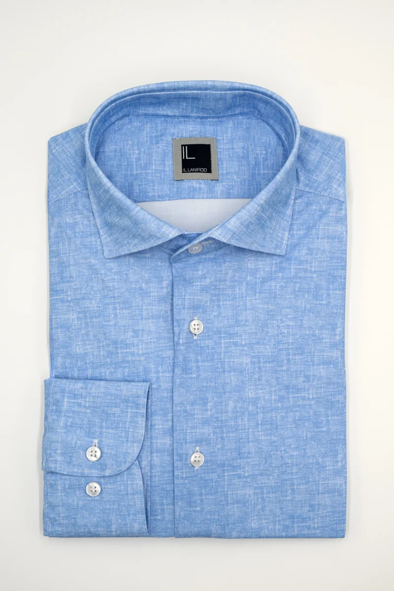 Camicia slim fit da uomo in tessuto tecnico azzurro, essenziale per una camiceria moderna e versatile Questa camicia azzurra da uomo in tessuto tecnico elasticizzato combina comfort e stile in un capo perfetto per la quotidianitร  dinamica. Il taglio slim fit segue la linea del corpo con naturalezza, mentre il colletto classico morbido e la chiusura frontale con bottoni confermano un design pulito e raffinato. Ideale per chi cerca capi funzionali e contemporanei nella propria selezione di camiceria uomo, si abbina perfettamente a pantaloni sartoriali per il lavoro o a chino e denim scuro per un look casual ma curato. Parte della collezione IL Lanificio, rappresenta un punto dโ€™incontro tra eleganza e praticitร  nel mondo della camiceria maschile.