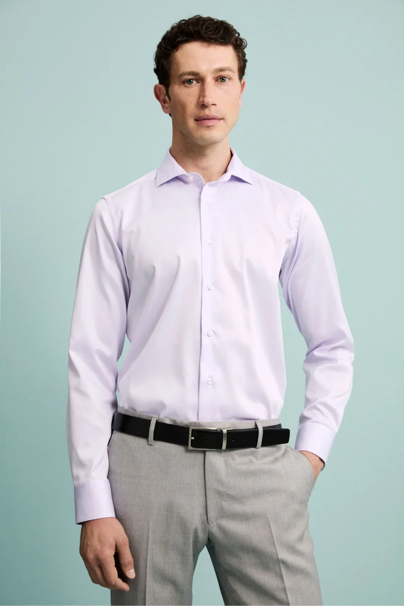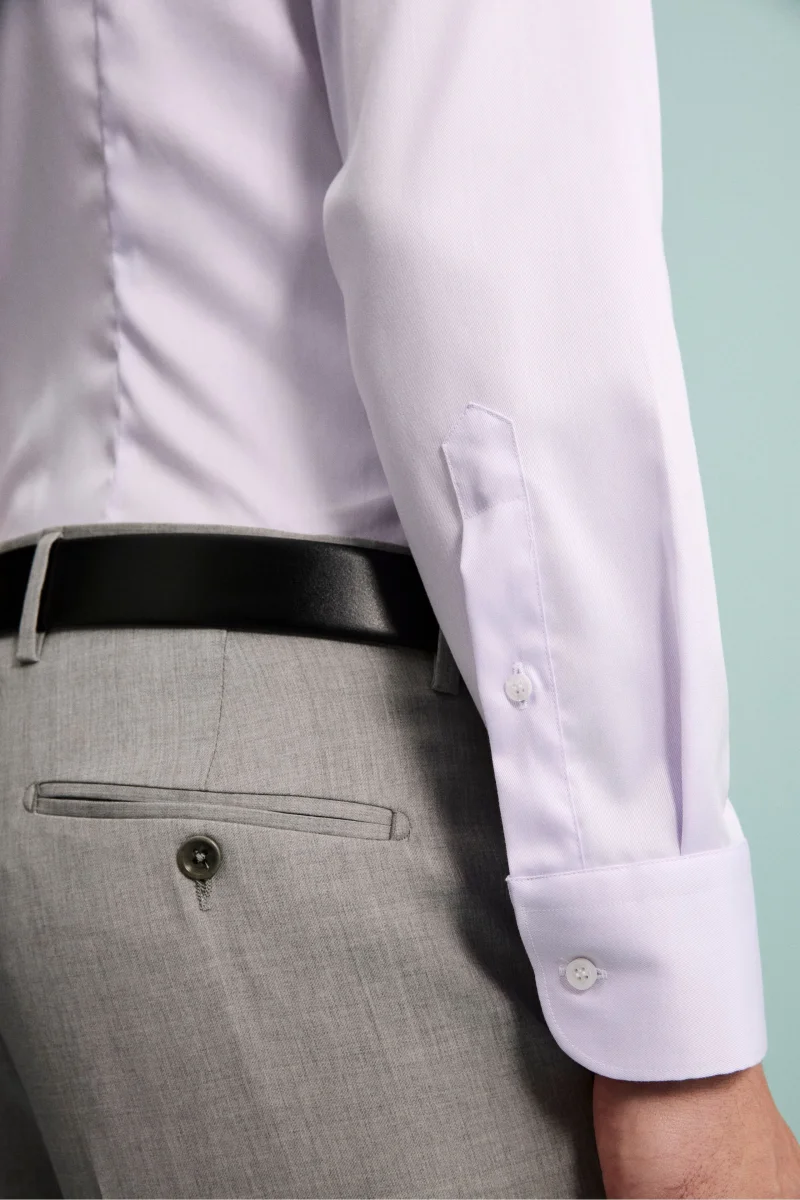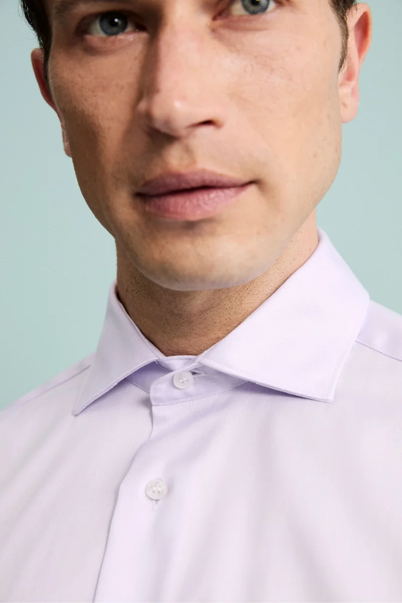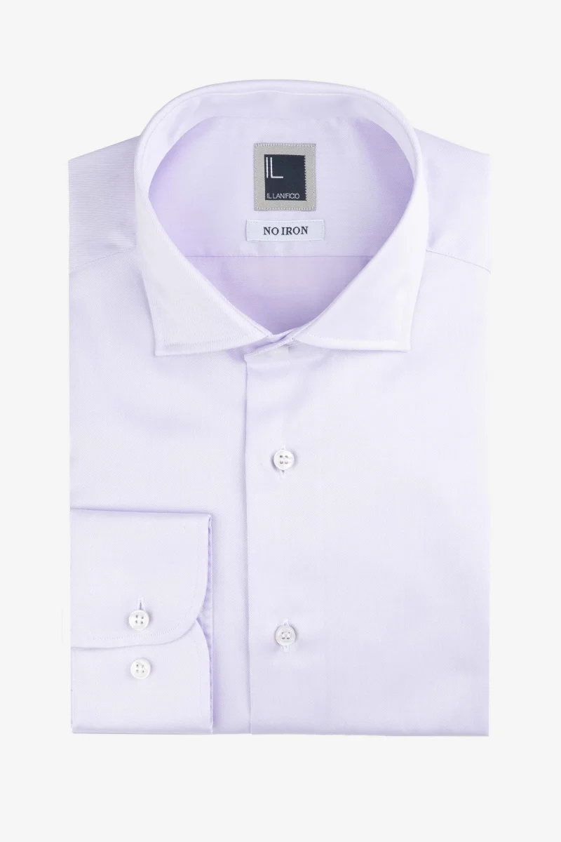 Camicia in cotone con trattamento NO IRON che la rende antipiega e facile da stirare, collo semi francese vestibilitร slim. Le stecche estraibili, l’attaccatura delle maniche all’inglese, i bottoni cuciti con punto annodato per una perfetta tenuta, le cuciture con 7 punti al cm danno alle nostre camicie quel tocco sartoriale in piรน che le rendono uniche