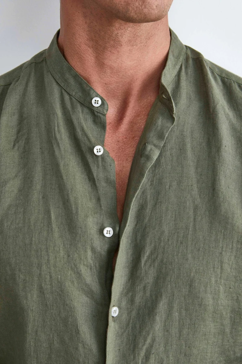Camicia Verde in Lino Custom Fit – VERDE MILITARE