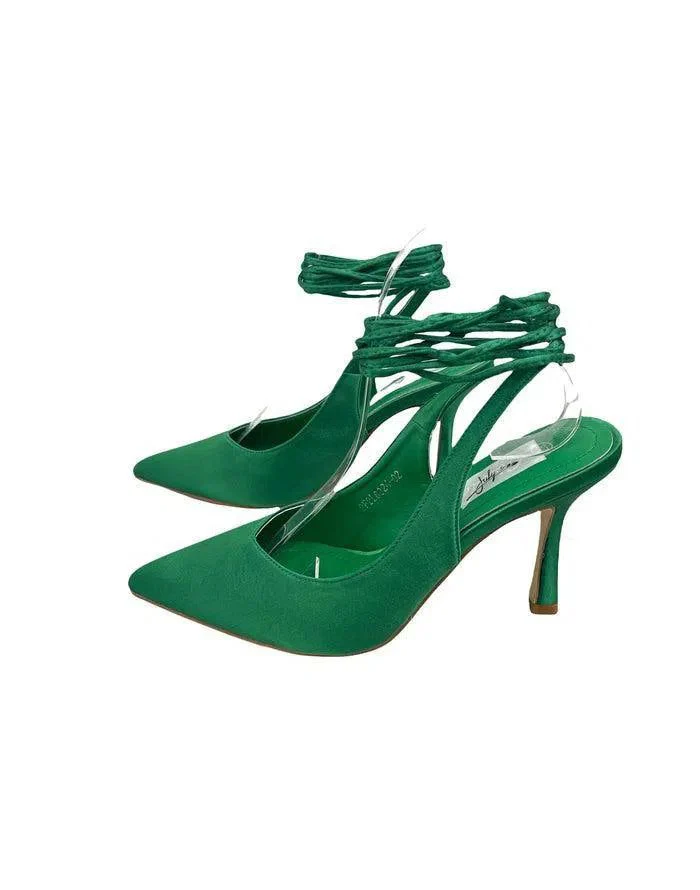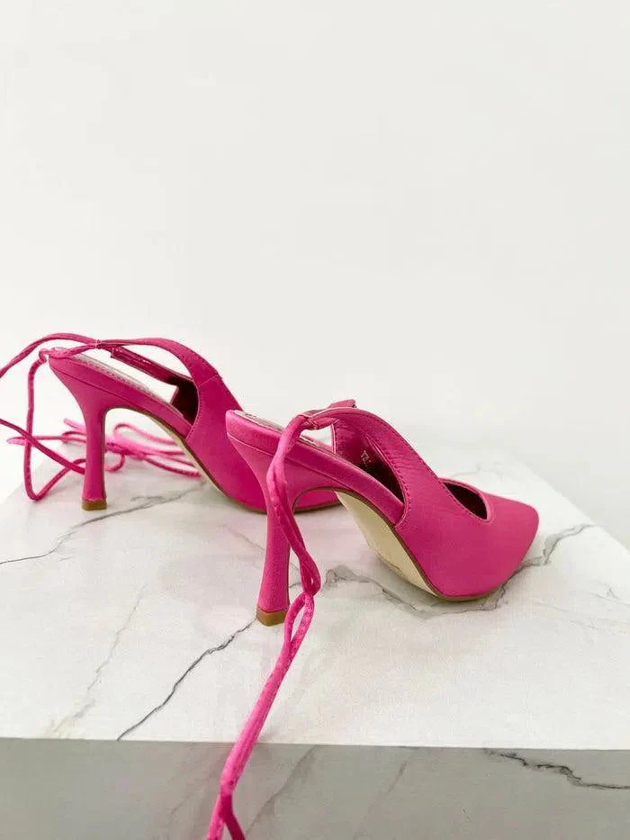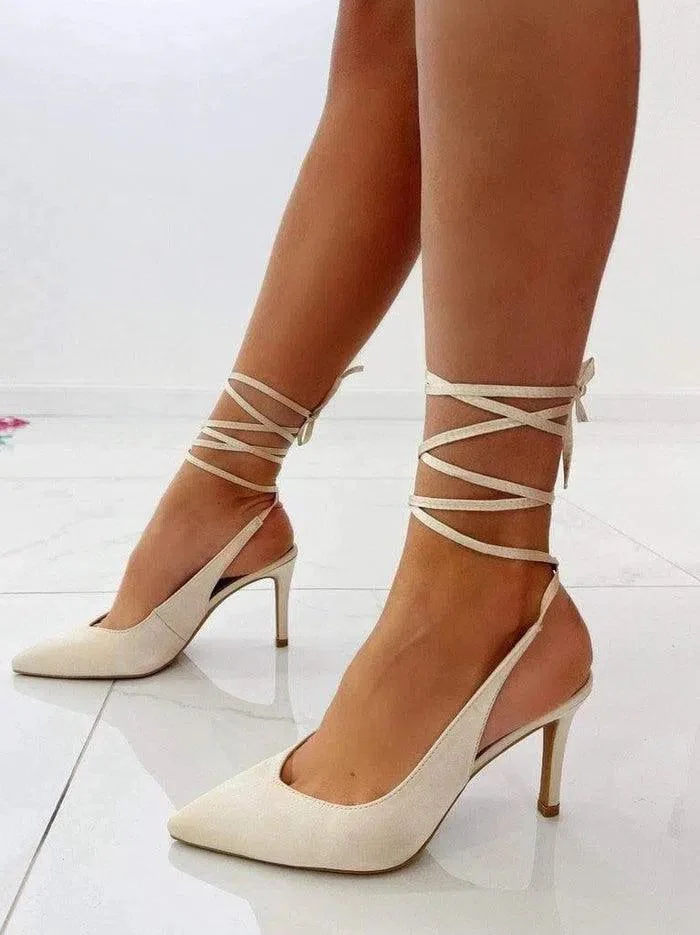 CAMILLA- Décolleté a punta con lacci alla caviglia in raso
