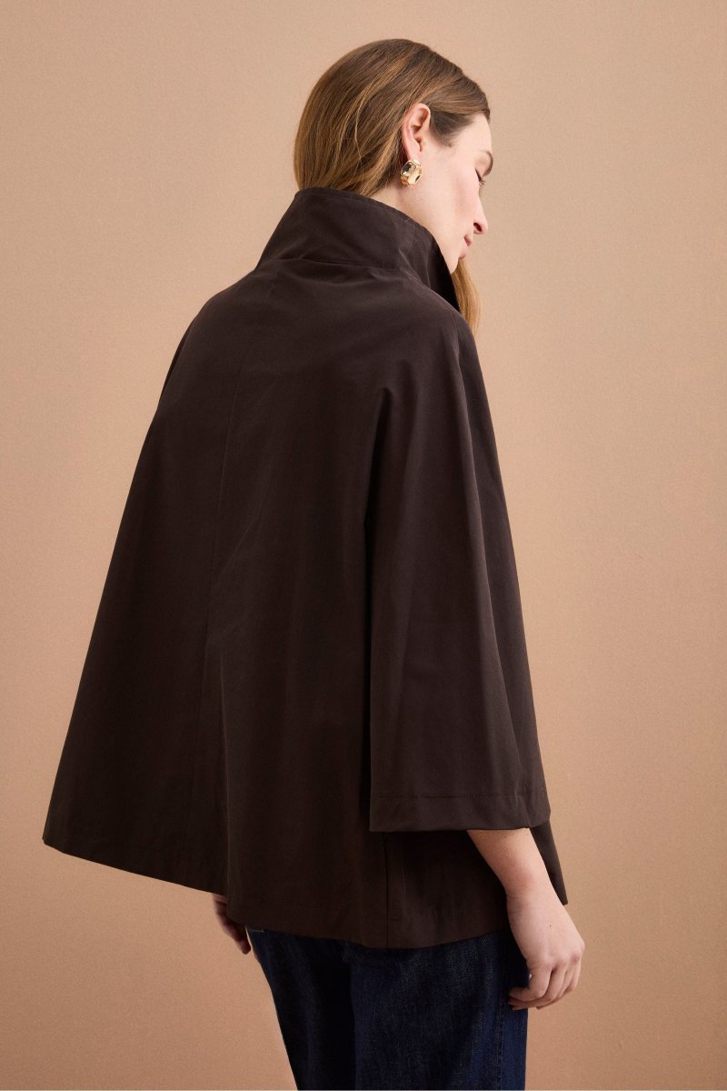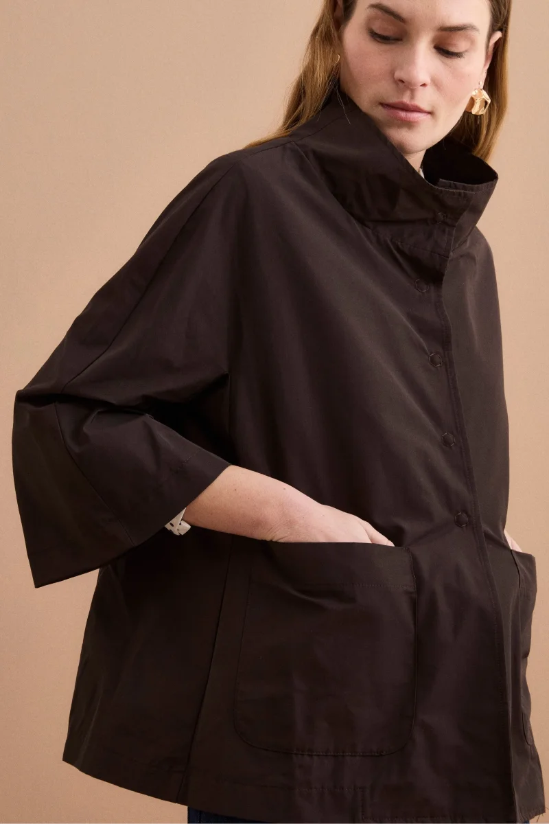Cappa over sfoderata in misto cotone, una giacca da donna dal design contemporaneo, ideale per la mezza stagione grazie alla sua struttura leggera e versatile. Realizzata in misto cotone, presenta una linea ampia e svasata con lunghezza ai fianchi che dona movimento e comfort, mentre il colletto alto e la chiusura frontale con bottoni a […]