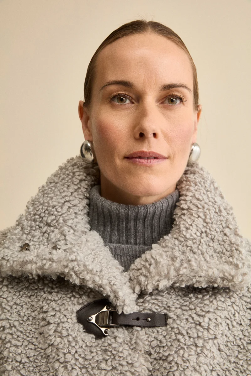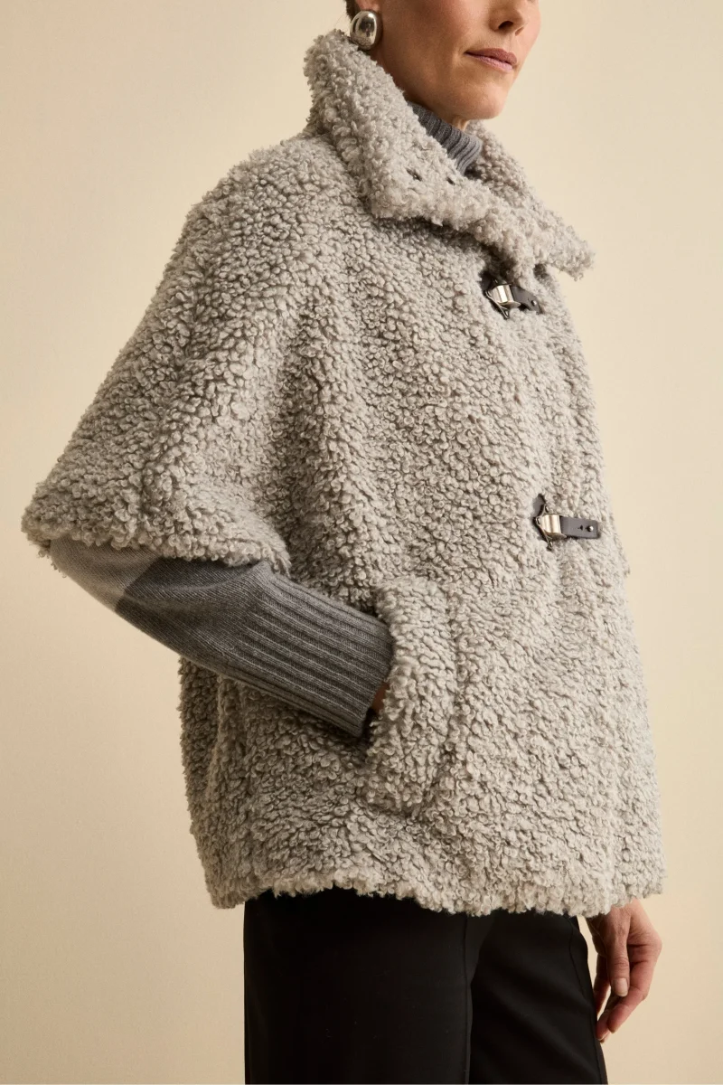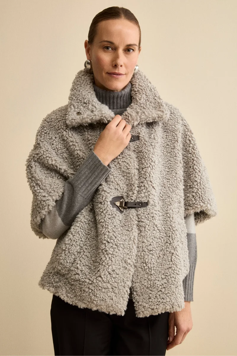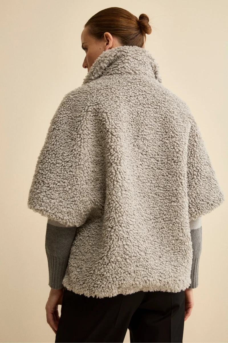 Cappa Teddy Over con Mezza Manica, un capo dallo stile contemporaneo e raffinato, perfetto per aggiungere un tocco di eleganza informale al guardaroba femminile. Caratterizzata da una vestibilitร over e da una linea svasata, presenta un collo alto, mezza manica e tasche laterali. Completamente foderata, avvolge con morbidezza e leggerezza, offrendo calore e comfort nelle giornate piรน fresche. Parte della collezione Il Lanificio, questa cappa da donna esprime la qualitร del Made in Italy e lโattenzione ai dettagli che contraddistingue la tradizione sartoriale. Da indossare su un dolcevita in lana e pantaloni ampi per un look sofisticato e attuale. La modella รจ alta 178 cm e indossa la taglia 42.