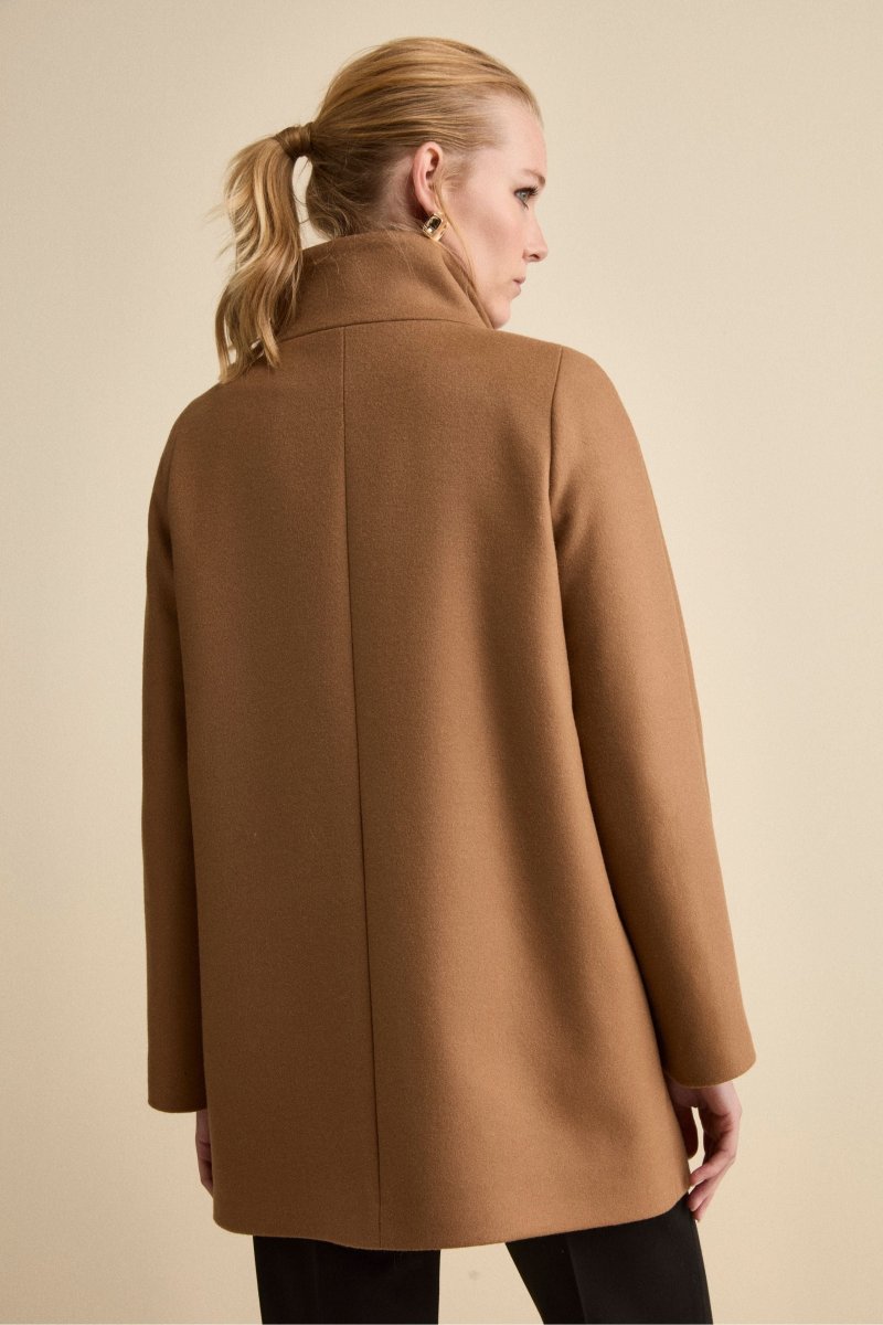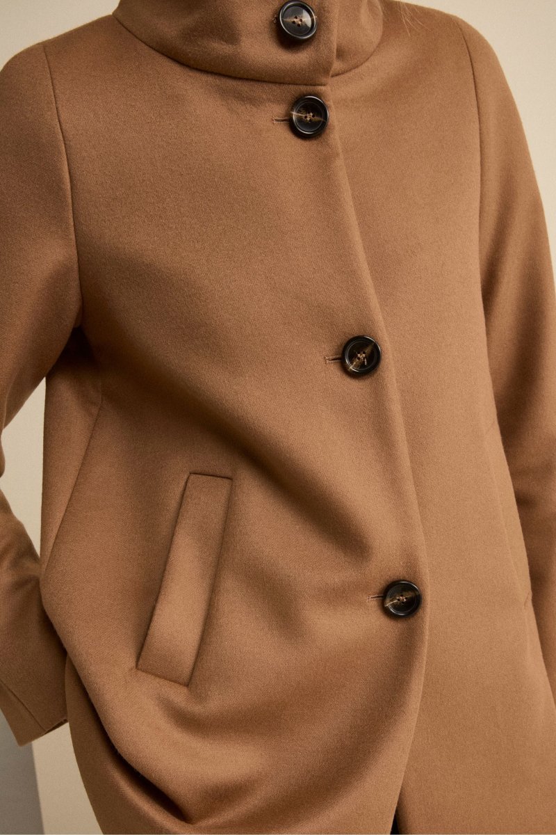 Cappotto Corto Foderato con Collo Alto – CUOIO