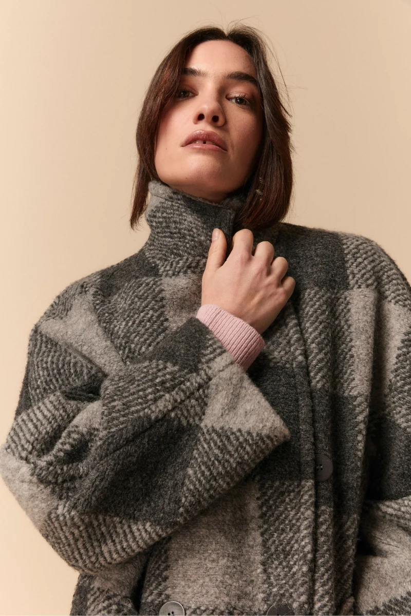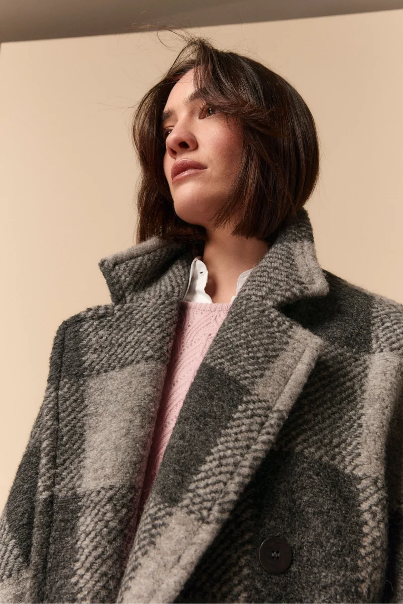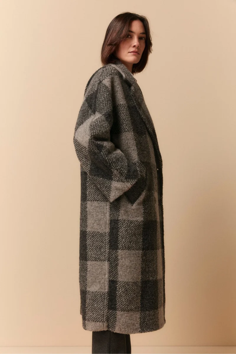 Cappotto Doppiopetto Check in Misto Lana – GRIGIO QUADRI