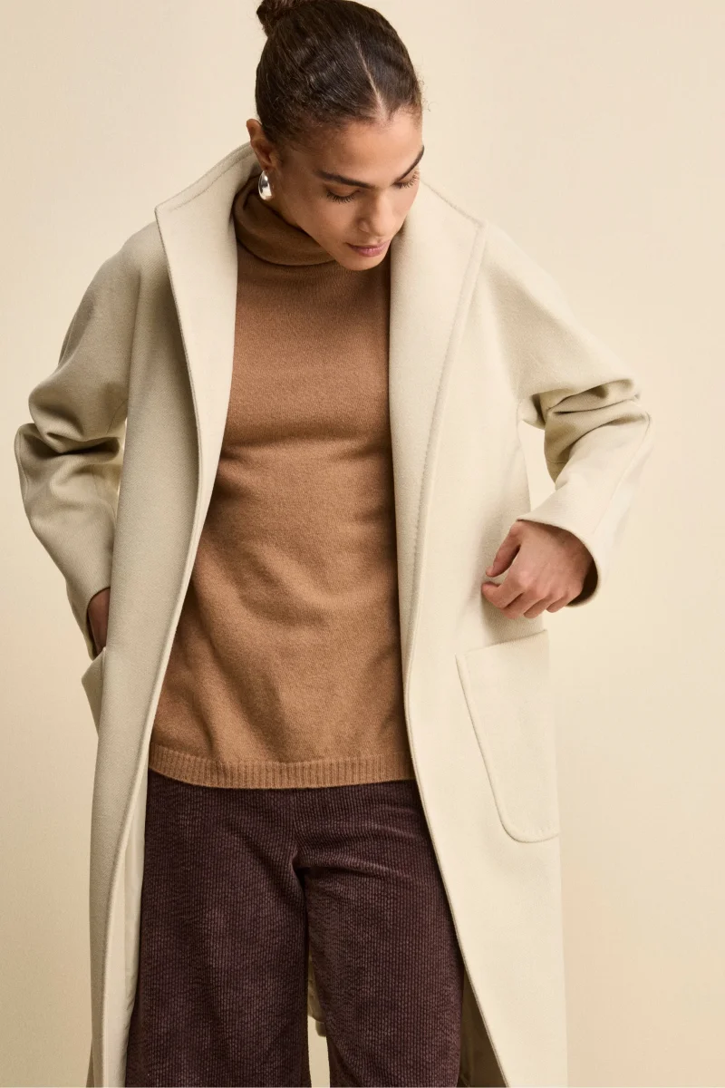 Cappotto Lungo Foderato con Cintura – BEIGE