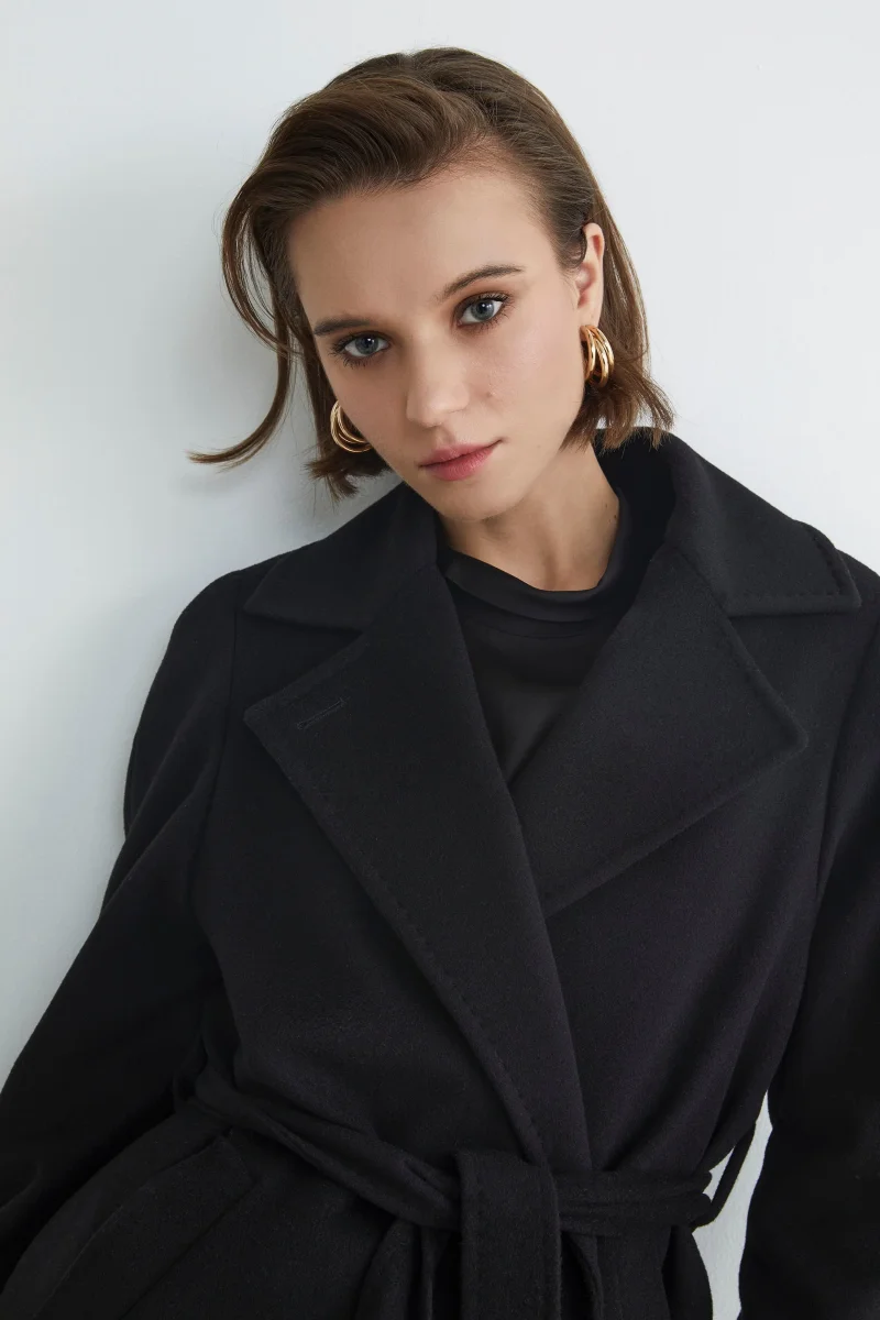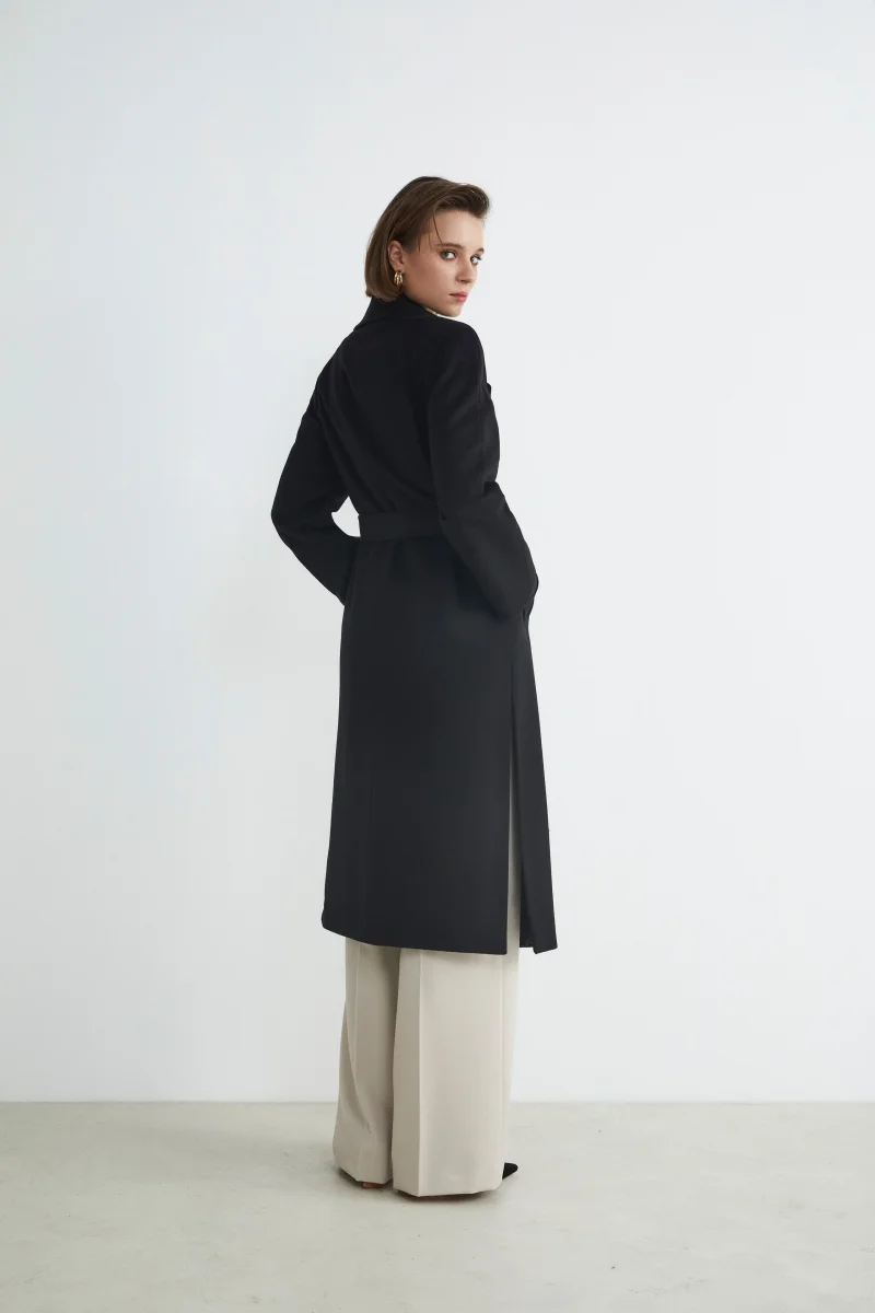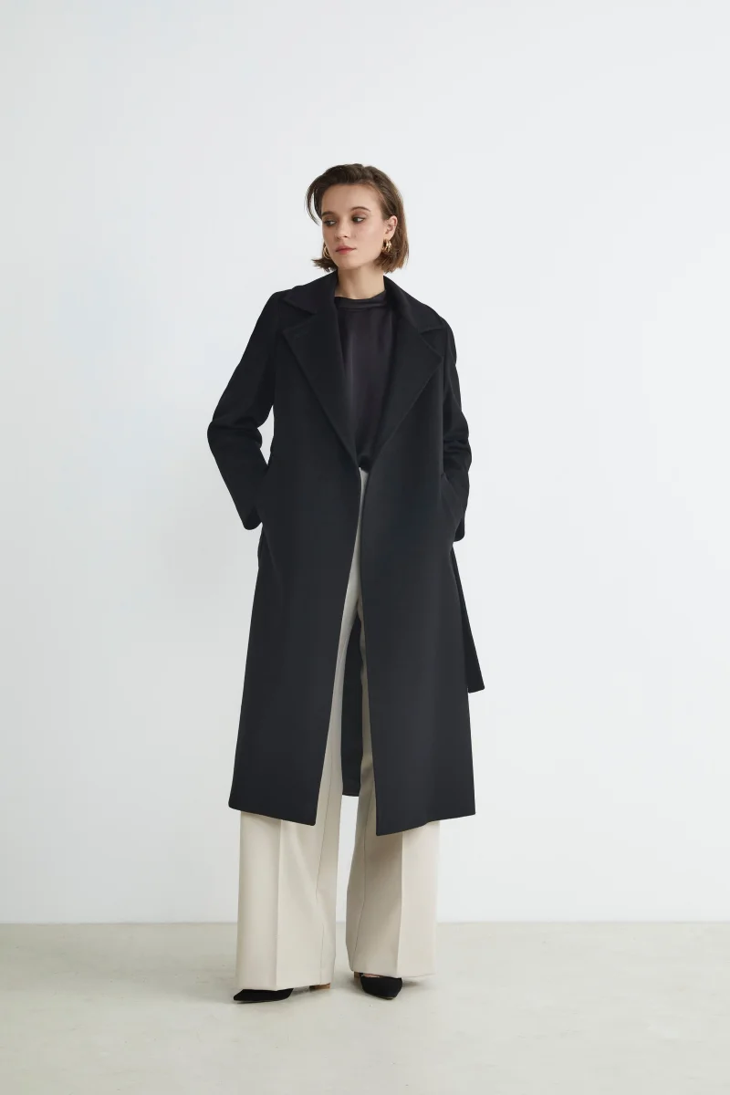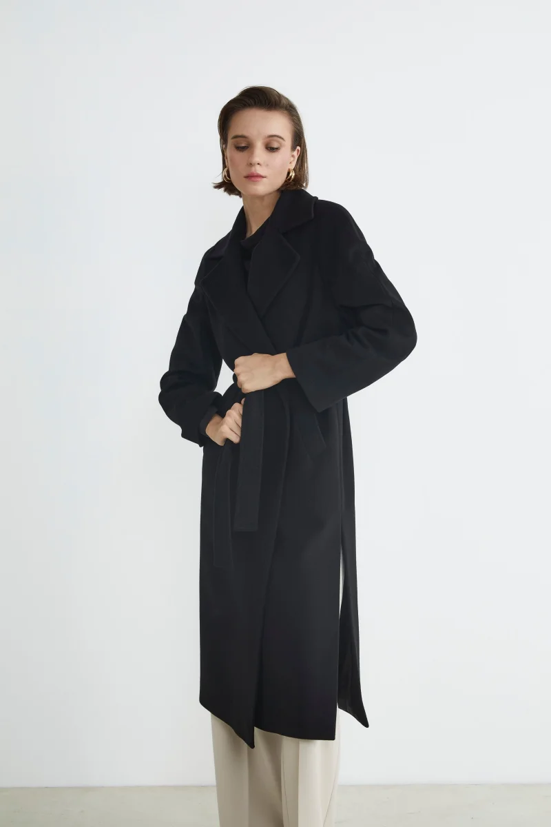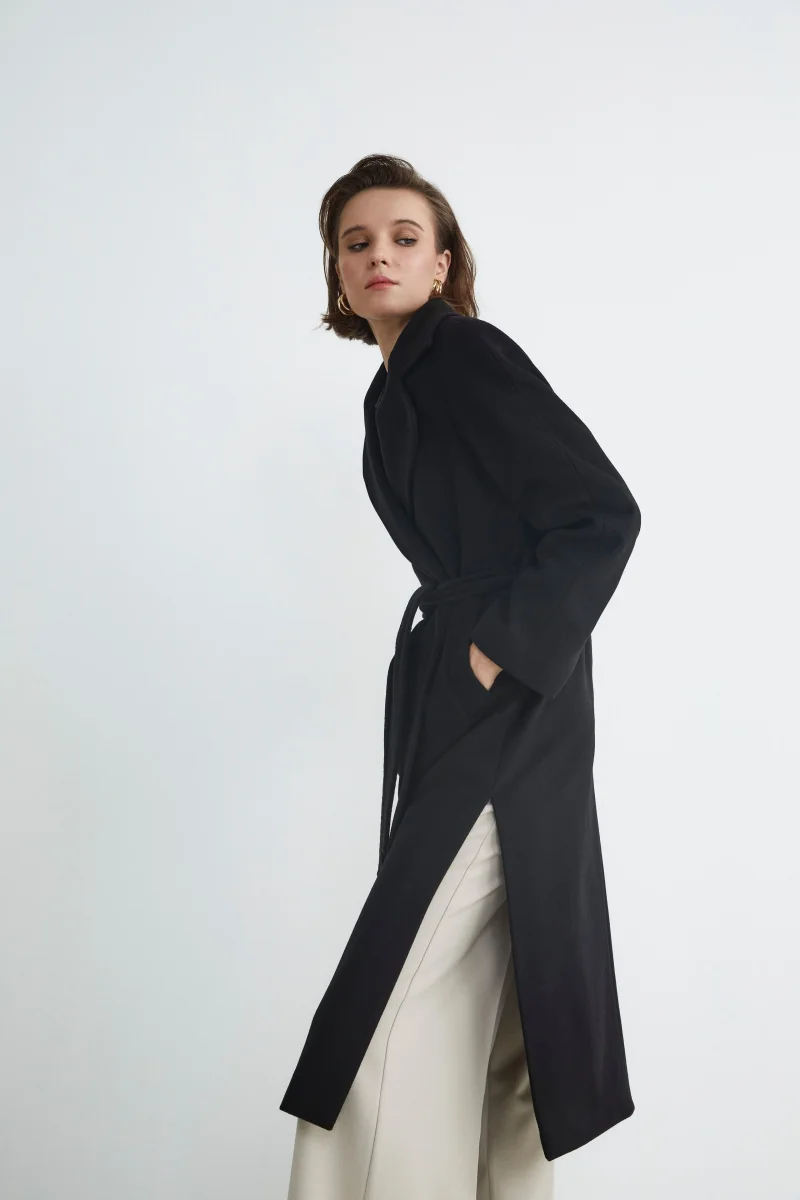 Cappotto lungo realizzato in lana e cashmere con fodera interna, cintura, tasche a filetto diagonali e spacchi laterali per una massima libertร di movimento. Il cappotto da indossare al volo perchรฉ lo abbini con tutto. Indossalo dal giorno alla sera, con il nostro completo jogger in cashmere o con un completo da ufficio. Vestibilitร regolare. Lunghezza al polpaccio