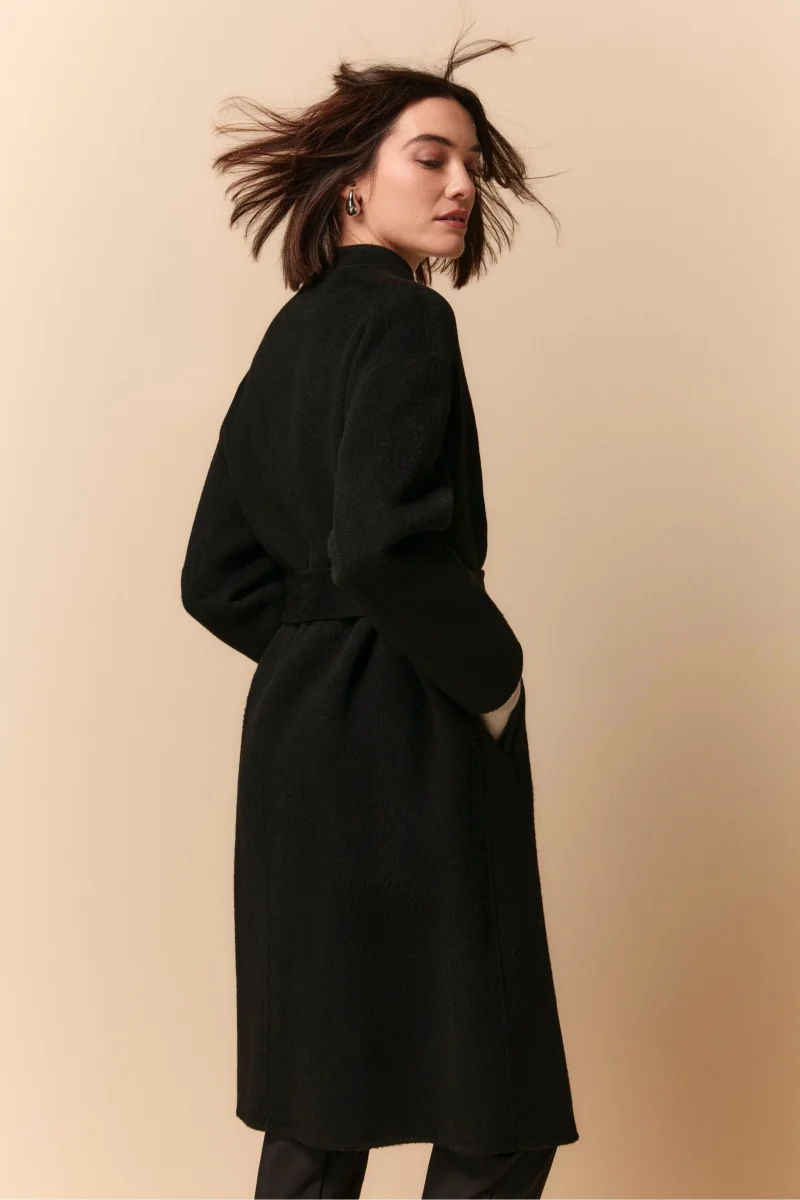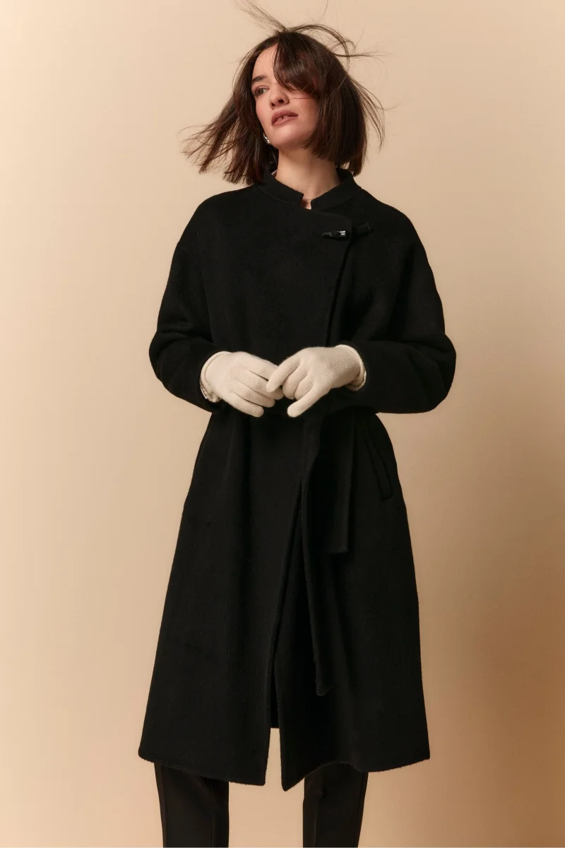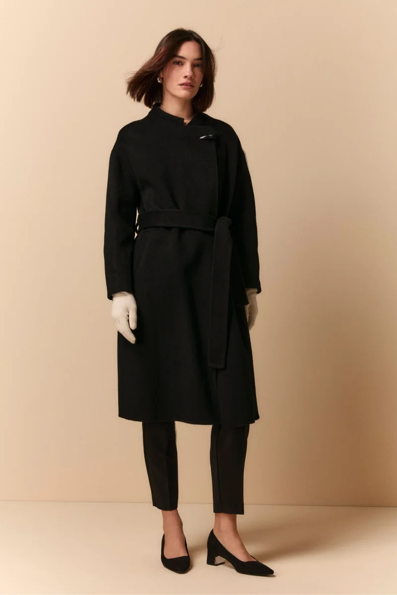 Scopri il fascino senza tempo del cappotto vestaglia da donna, realizzato in 100% lana per garantire un comfort e calore assoluti. Caratterizzato da una linea lunga e fluida, questo capo presenta una cintura in vita per valorizzare la silhouette e una chiusura con bottone per un tocco di raffinatezza. Il design over, con spalla scesa e collo alto, garantisce uno stile contemporaneo e versatile, perfetto per affrontare le giornate piรน fredde. Dotato di pratiche tasche con pattina laterali, il cappotto รจ completamente sfoderato, per una leggerezza che non sacrifica il calore. Ideale per completare look casual o outfit piรน formali, questo cappotto in lana da donna si adatta con eleganza a ogni occasione. La modella รจ alta 176 cm e indossa la taglia 42.