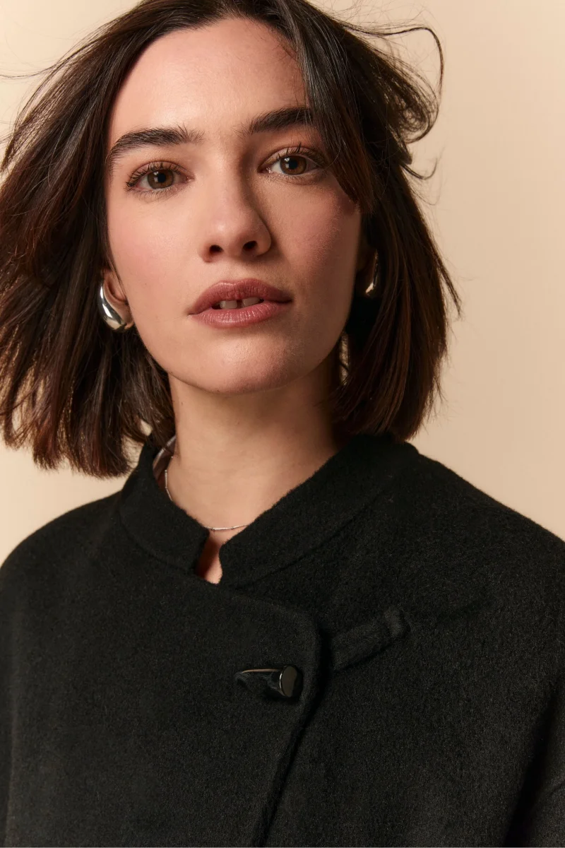 Cappotto Corto Foderato con Collo Alto – CUOIO