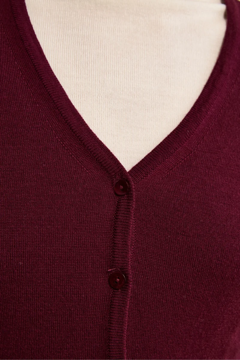 Cardigan in Lana Merino con Scollo a V – BORDEAUX