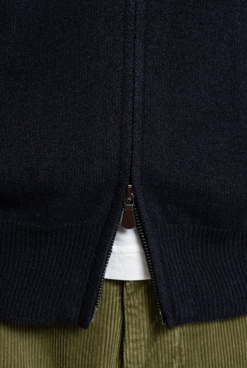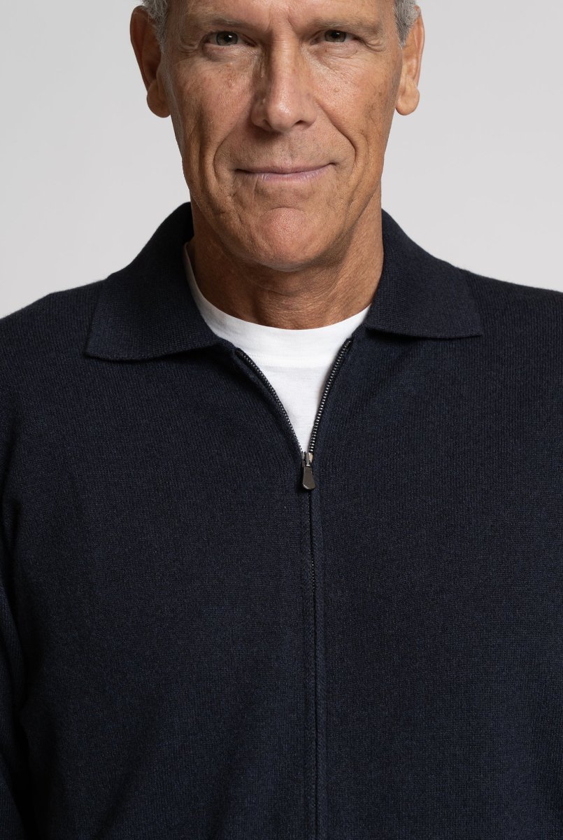 Cardigan in Misto Cashmere con Zip frontale, Navy