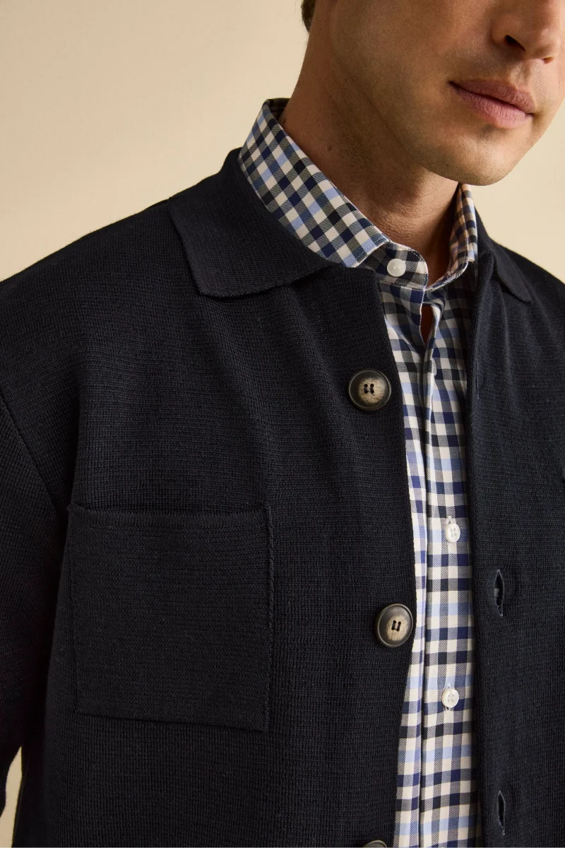 Cardigan in Misto Lana con Tasche, realizzato in pregiato filato Australia Raumer, รจ un cardigan da uomo con colletto camicia che unisce eleganza e comfort quotidiano. Presenta chiusura frontale con bottoni e pratiche tasche applicate sul petto, dettagli che esaltano lo stile senza rinunciare alla funzionalitร . La vestibilitร regular lo rende versatile e adatto a ogni occasione, ideale da indossare sopra una camicia per un look raffinato o con una t-shirt per un outfit piรน casual. Parte della collezione Il Lanificio, made in Italy. Il modello รจ alto 189 cm e indossa la taglia 50.