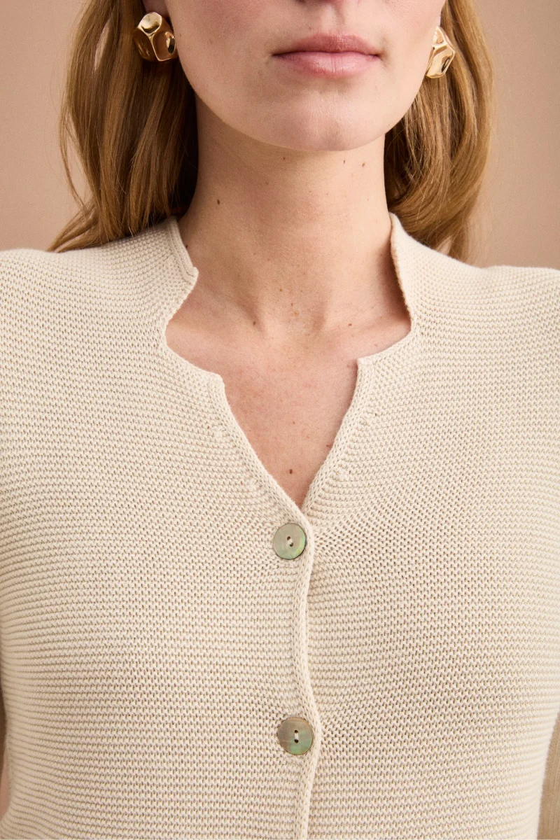 Cardigan Links Scollo a V in Cotone – VANIGLIA