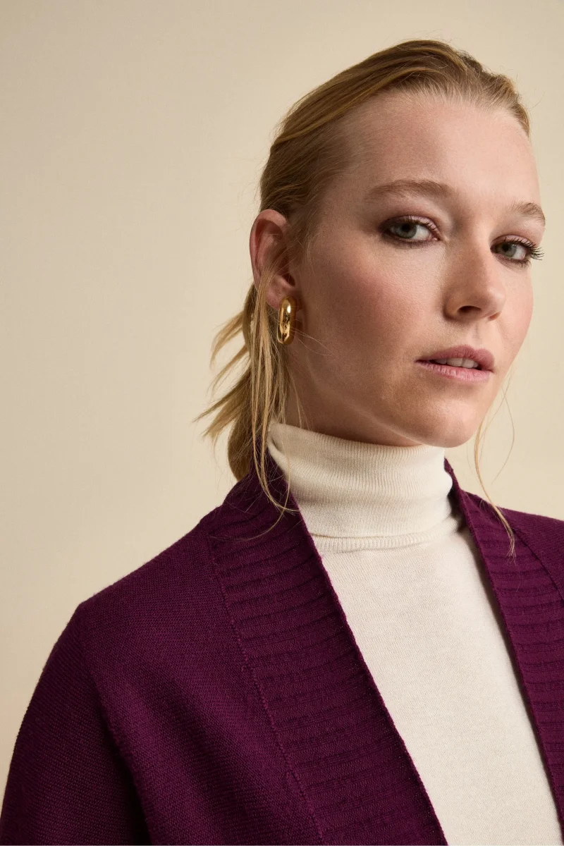 Cardigan Lungo con Collo a Scialle in Lana – PRUGNA