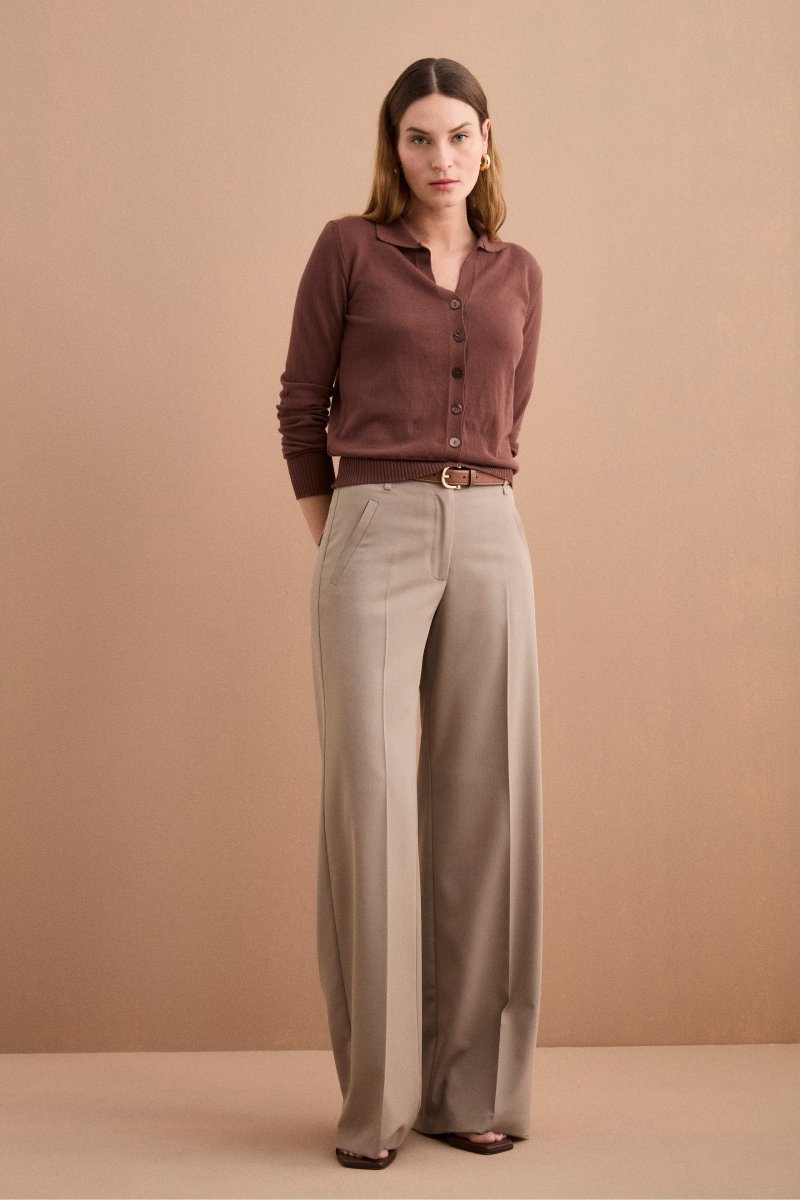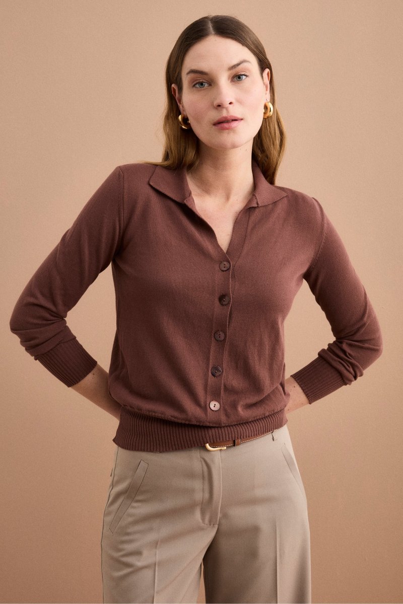 Cardigan polo in cotone da donna, un capo essenziale per la stagione primavera estate, pensato per unire comfort, leggerezza e stile contemporaneo. Realizzato in 100% cotone finezza 12, si distingue per la qualitร del filato e per la vestibilitร regular fit con taglio dritto e morbido che valorizza la silhouette con naturalezza. Il colletto a camicia richiama lโeleganza della polo reinterpretata in chiave femminile, mentre le maniche lunghe e i bordi a coste su polsini e fondo completano il design con equilibrio. Parte della collezione Il Lanificio e interamente Made in Italy, รจ perfetto da abbinare a pantaloni sartoriali o gonne midi per un look raffinato da giorno, oppure a denim e blazer leggeri per uno stile casual chic versatile. La modella รจ alta 178 cm e indossa la taglia 42.