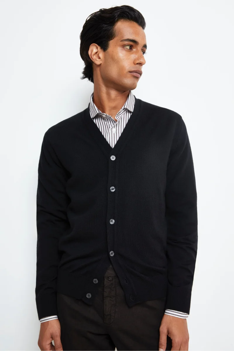 Cardigan Scollo a V in Lana Merino – NERO