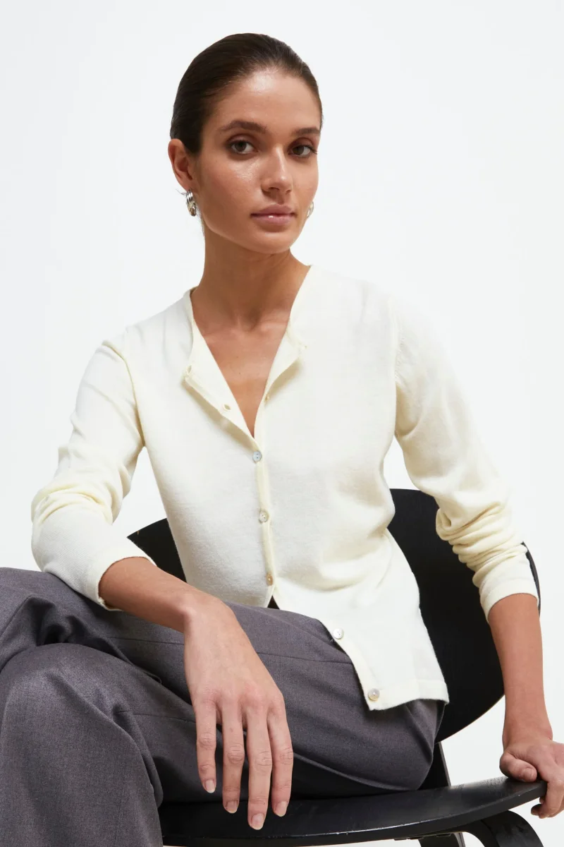 Cardigan Slim in lana merino – ECRU