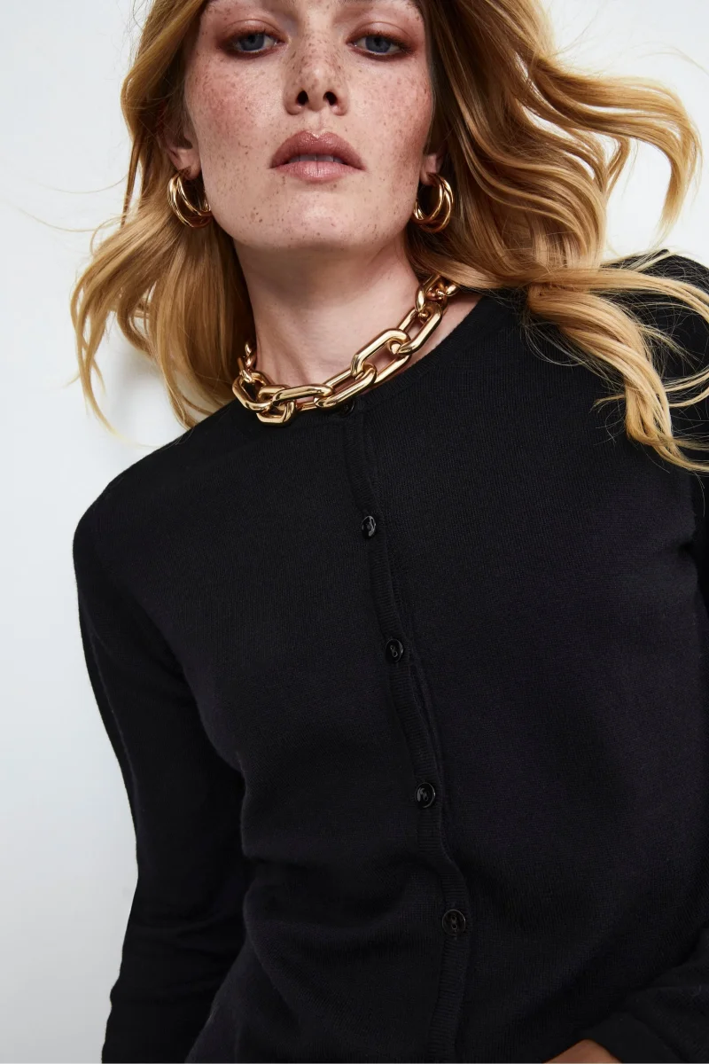 Cardigan Slim in lana merino – NERO