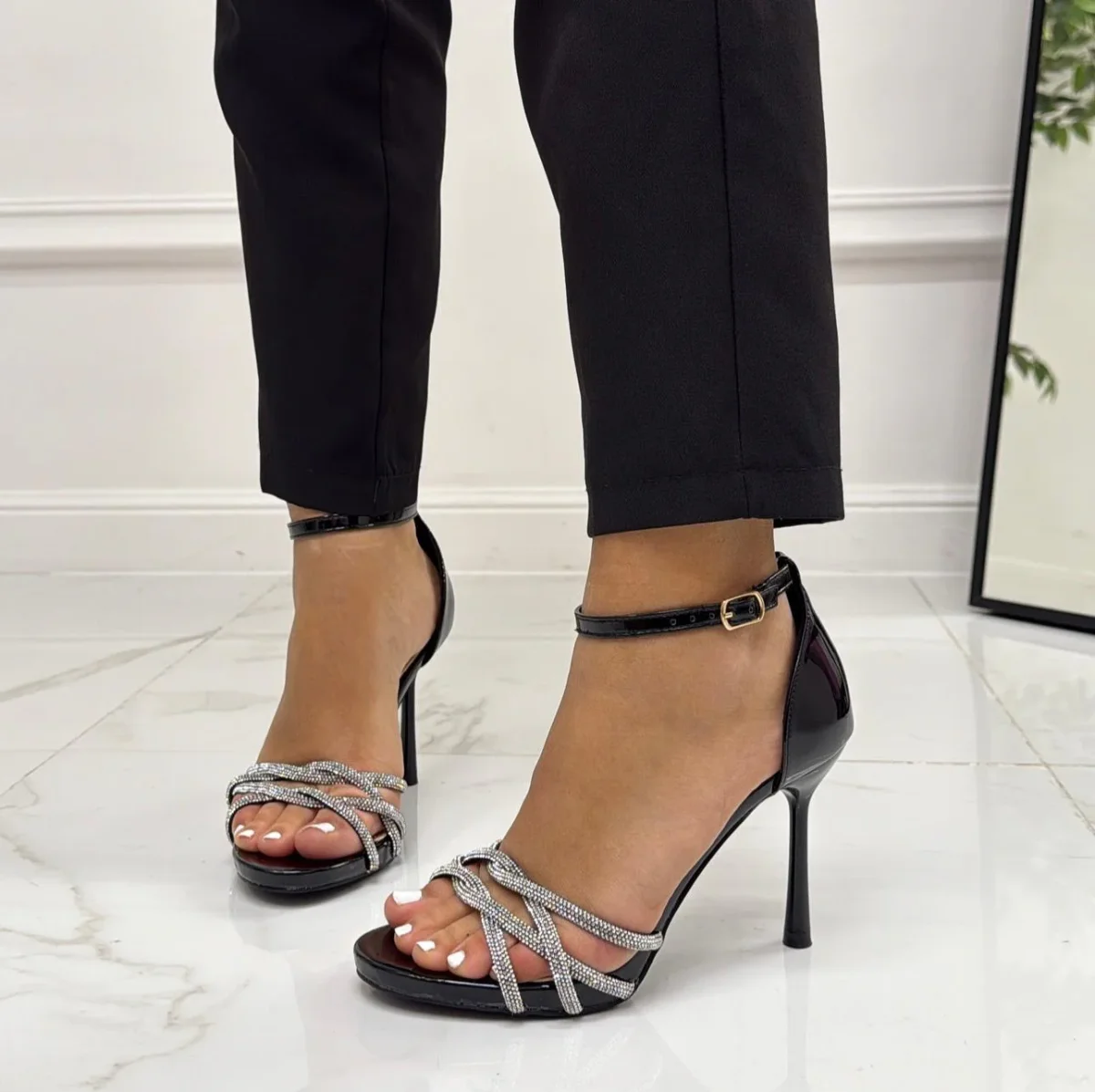 Questo sandalo con tacco รจ un accessorio unico ed inimitabile nel suo genere. Indossato, regala alla donna che lo indossa charme, eleganza e sensualitร , tutte caratteristiche che ogni donna ricerca in un accessorio. Le particolaritร di questa scarpa sono: la trasparenza, strass, la punta ed il tacco a spillo alto circa 10 cm. Puรฒ essere adatta per occasioni particolari come feste, party, cerimonie, serate danzanti o cene impegnative. Possono accompagnare capi come: gonne, pantaloni, tute eleganti, abiti lunghi, vestiti e tutine. Ha una calzata regolare.