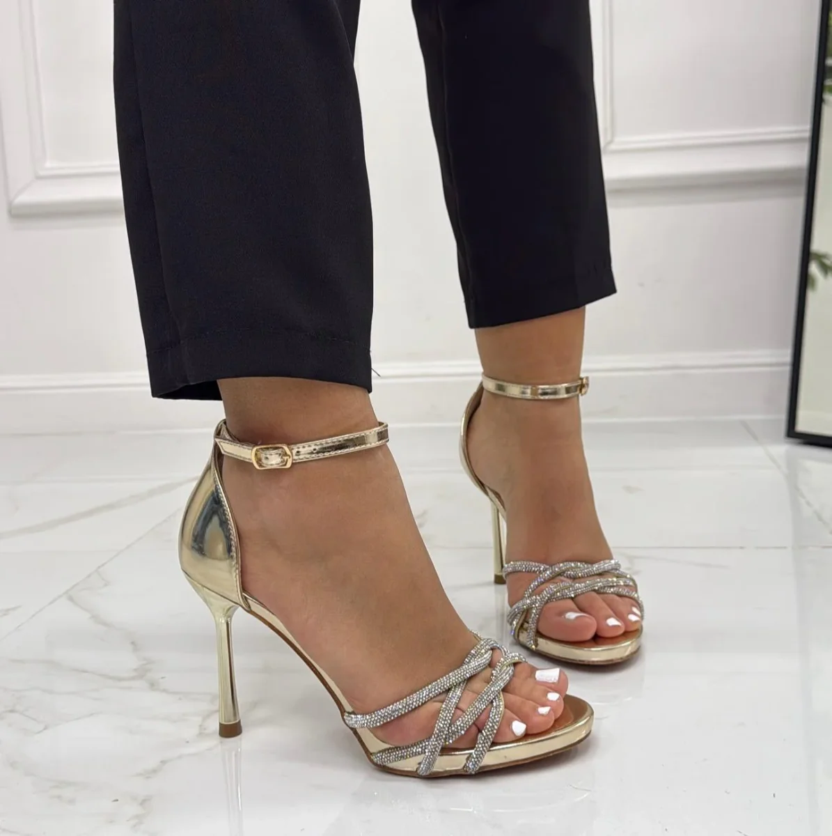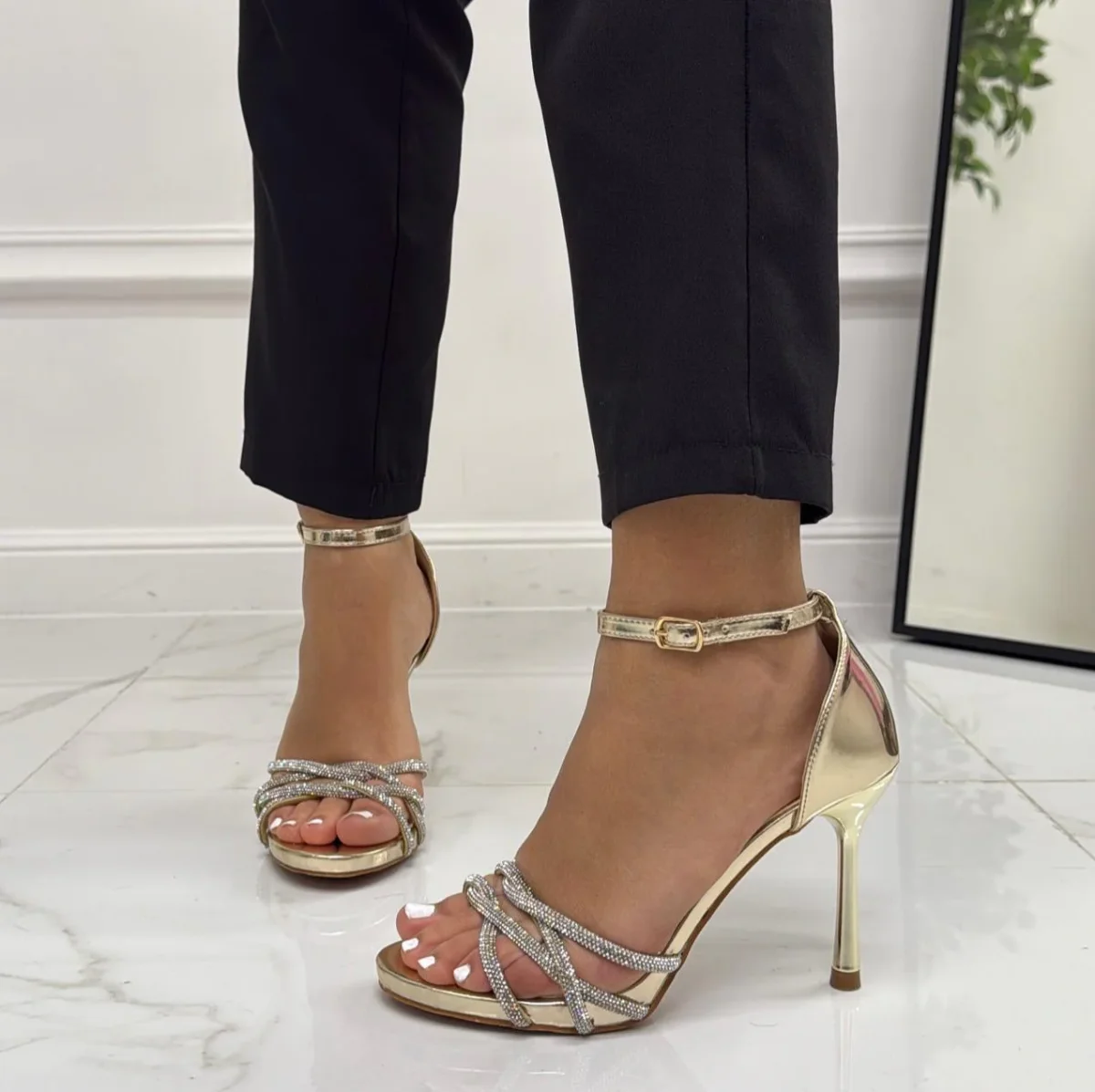 Chiara – Sandalo Donna Punta Tacco Spillo Elegante Oro