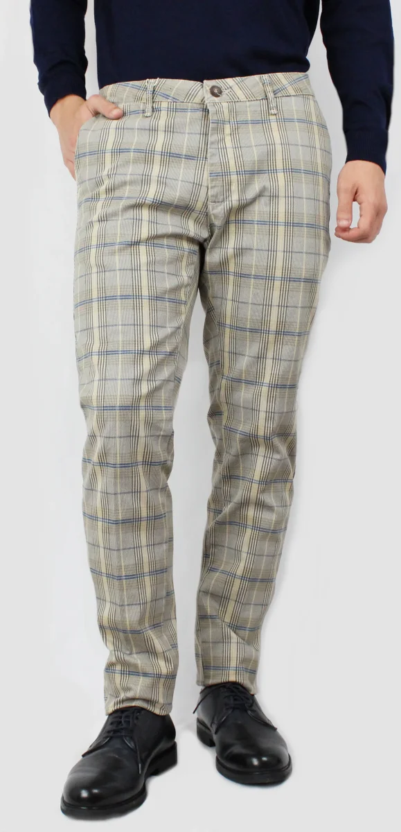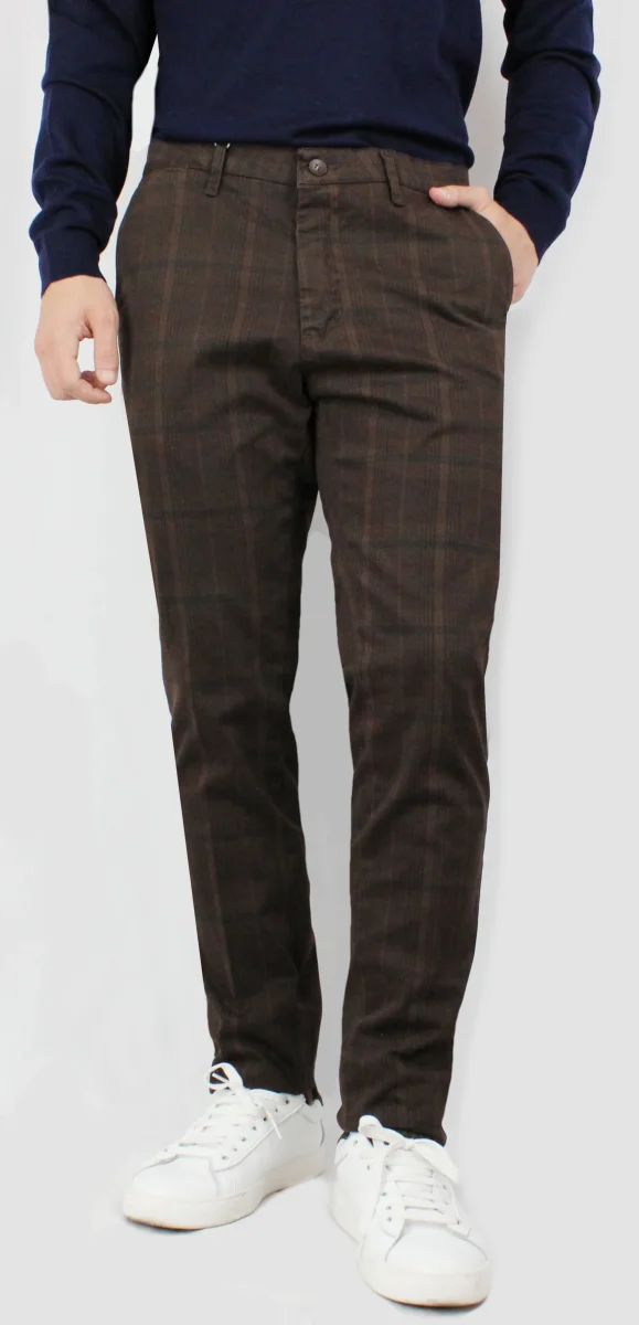 These Chinos Galles showcase a timeless Prince of Wales pattern, expertly tailored for a refined and versatile look. Crafted to combine classic elegance with modern comfort, they offer a sophisticated choice suitable for both casual and semi-formal occasions. The distinctive check design adds subtle character to your outfit while maintaining a polished silhouette. Perfect for those who appreciate detail and quality in contemporary menswear.