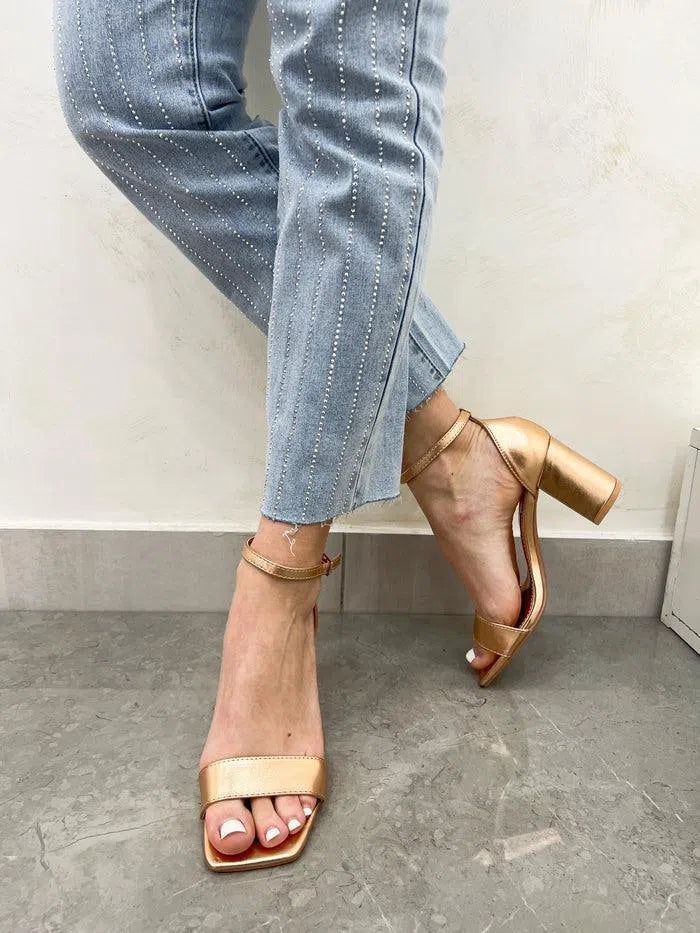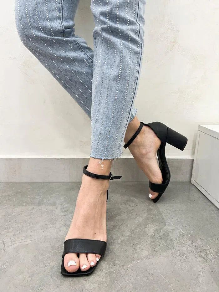 Elegante sandalo con cinturino, una perfetta combinazione di stile e comfort. Realizzato con cura nei minimi dettagli, questo sandalo presenta un tacco alto di 8cm, ideale per slanciare la figura, e un plateau di 0.5cm per una camminata stabile e sicura. La vestibilitร รจ regolare, garantendo una calzata perfetta per ogni tipologia di piede. Il cinturino regolabile si adatta alle esigenze di ogni cliente, assicurando un sostegno ottimale del piede e una camminata fluida e senza stress. Il design minimalista e raffinato si adatta a qualsiasi abbigliamento e occasioni formali, rendendolo un’aggiunta indispensabile al guardaroba di ogni donna.